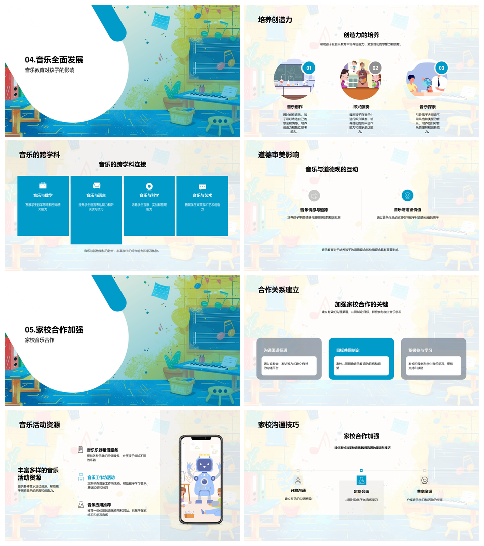 音乐教育家校协作提升素养跨科教法家庭活动情感氛围PPT模板