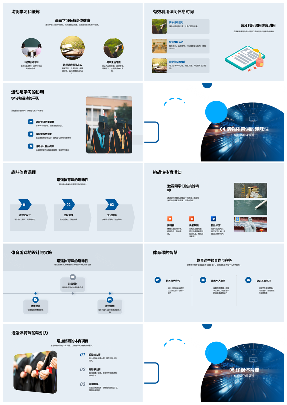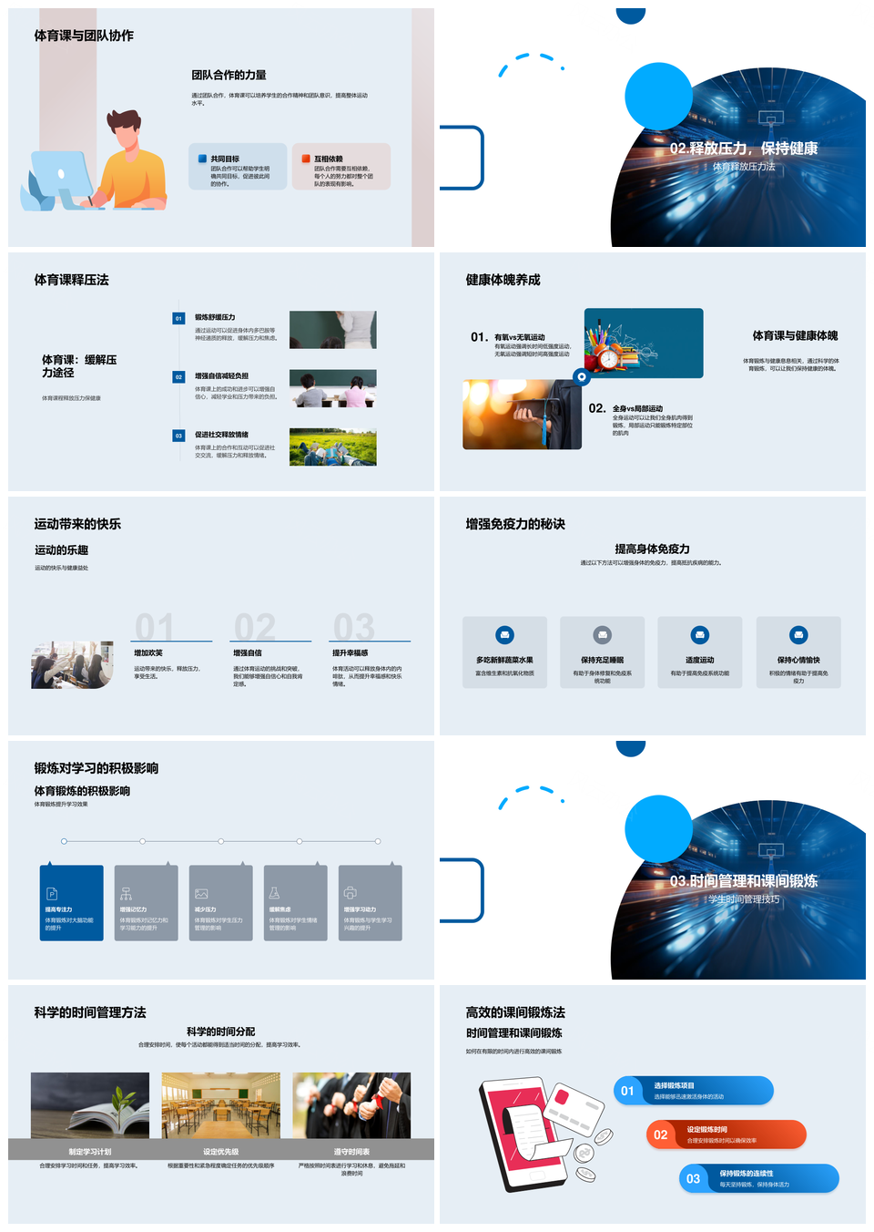 风云办公提供的高三体育课趣味活动释压健体促学PPT模板,下载格式为pptx,一共33页,作品中文字及图均可以修改和编辑,图片更改请在作品中右键图片并更换,文字修改请直接点击文字进行修改。