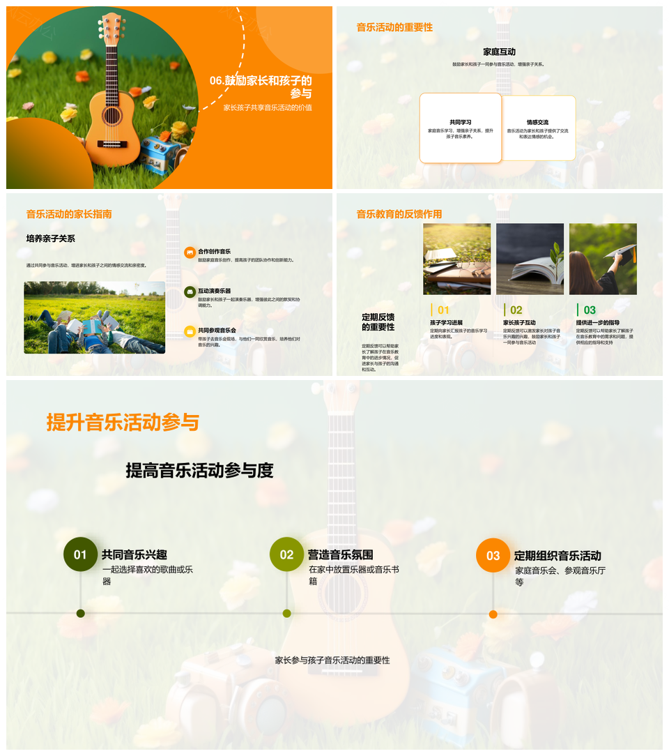 这是一张音乐启蒙助力幼儿早教幼师家庭身心发展PPT模板,包含音乐启蒙、幼儿早教、幼师、家庭、身心发展等主题内容,也可用作音乐启蒙助力幼儿早教、助力幼儿早教幼师、幼儿早教幼师家庭、早教幼师家庭身心发展、音乐启蒙助力幼儿、音乐启蒙幼儿早教、助力幼儿早教、幼儿早教幼师、早教幼师家庭、幼师家庭身心发展、音乐启蒙助力、幼儿早教、助力幼儿、幼师家庭、家庭身心发展等PPT场景使用。 风云办公提供的音乐启蒙助力幼儿早教幼师家庭身心发展PPT模板,下载格式为pptx,一共33页,作品中文字及图均可以修改和编辑,图片更改请在作品中右键图片并更换,文字修改请直接点击文字进行修改。