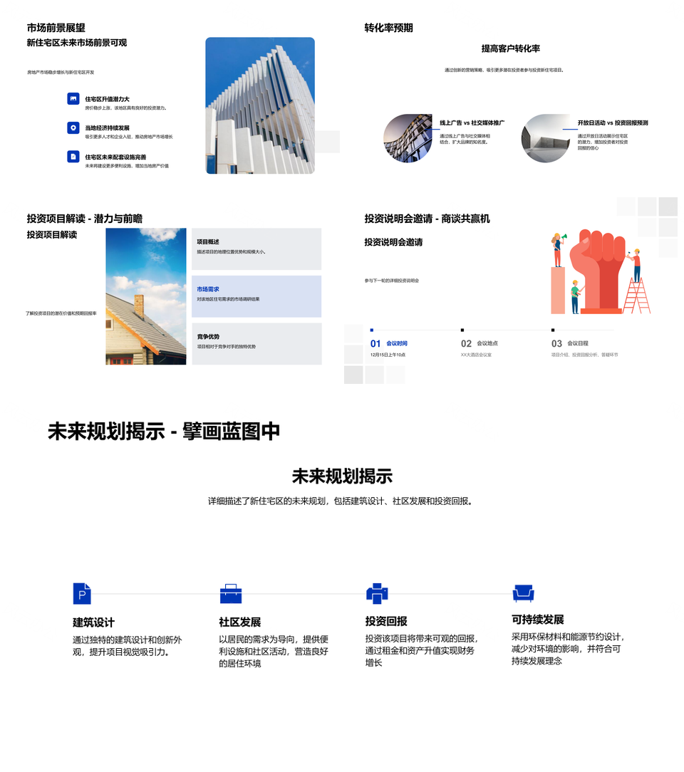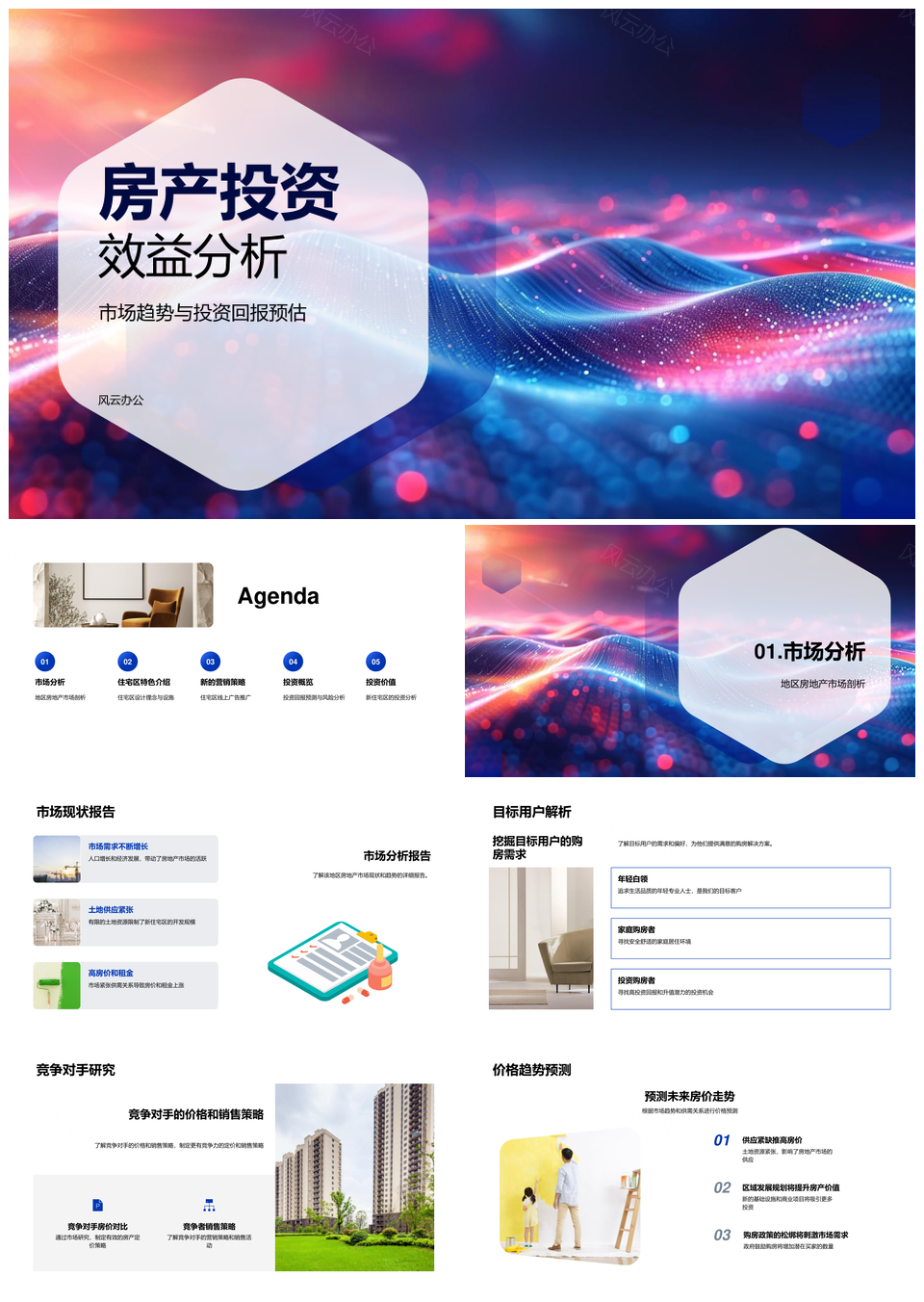 这是一张房产投资效益分析市场趋势回报预估竞策略风险PPT模板,包含房产投资、效益分析、市场趋势、回报预估、竞争策略、风险等主题内容,也可用作房产投资效益分析、投资效益分析市场、效益分析市场趋势、分析市场趋势回报、市场趋势回报预估、趋势回报预估竞策略、回报预估竞策略风险、房产投资效益、投资效益分析、效益分析市场、分析市场趋势、市场趋势回报、趋势回报预估、回报预估竞策略、预估竞策略风险等PPT场景使用。 风云办公提供的房产投资效益分析市场趋势回报预估竞策略风险PPT模板,下载格式为pptx,一共33页,作品中文字及图均可以修改和编辑,图片更改请在作品中右键图片并更换,文字修改请直接点击文字进行修改。