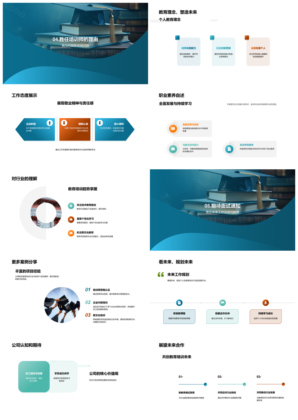 教培竞聘述职展专业技能教育趋势课程理念PPT模板推荐