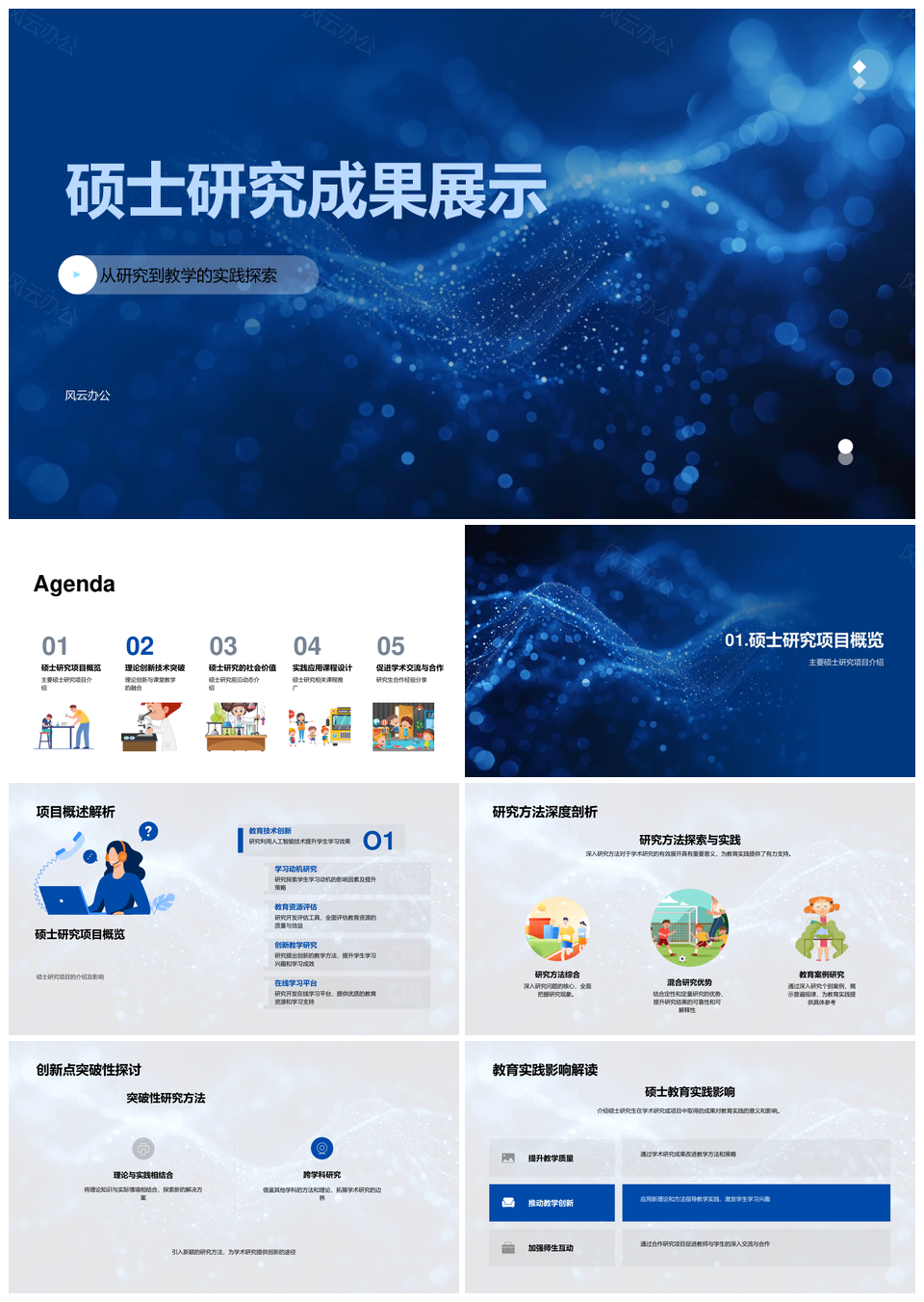 风云办公提供的硕士研究项目教学实践创新与成果转化PPT模板,下载格式为pptx,一共25页,作品中文字及图均可以修改和编辑,图片更改请在作品中右键图片并更换,文字修改请直接点击文字进行修改。