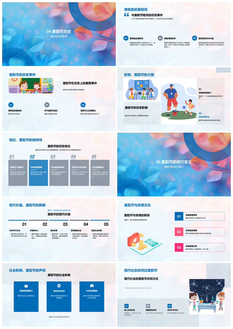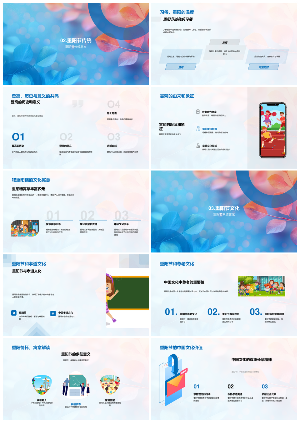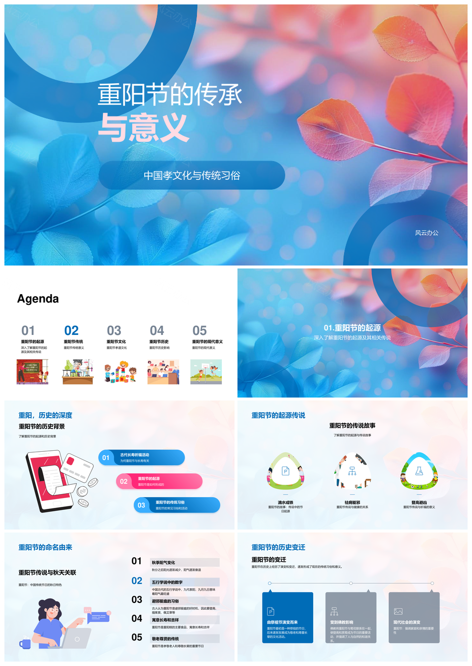这是一张重阳孝文化传统习俗起源登高赏菊糕传承PPT模板,包含重阳、孝文化、传统习俗、起源、登高、赏菊、糕、传承等主题内容,也可用作重阳孝文化传统习俗起源、重阳孝文化传统习俗登高、孝文化传统习俗起源登高、传统习俗登高赏菊菊糕、登高赏菊菊糕传承、重阳登高赏菊传承、孝文化传统习俗传承、传统习俗起源登高、起源登高赏菊、重阳传统习俗登高、孝文化起源登高、孝文化登高赏菊、重阳登高传承、重阳传统习俗传承、传统习俗菊糕传承等PPT场景使用。 风云办公提供的重阳孝文化传统习俗起源登高赏菊糕传承PPT模板,下载格式为pptx,一共28页,作品中文字及图均可以修改和编辑,图片更改请在作品中右键图片并更换,文字修改请直接点击文字进行修改。
