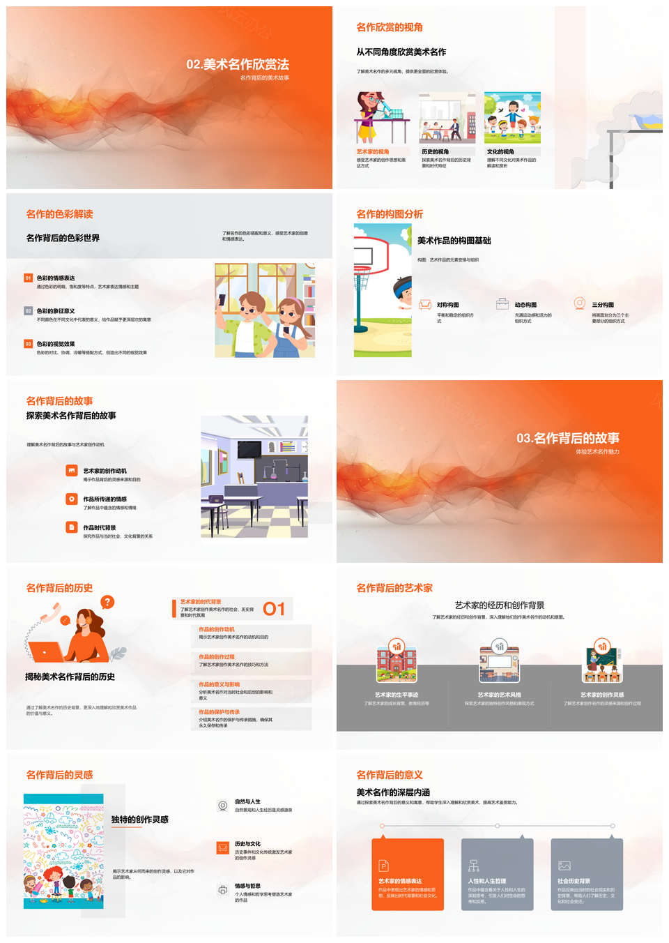 风云办公提供的小学生美术名作鉴赏构图色彩教学课件,下载格式为pptx,一共28页,作品中文字及图均可以修改和编辑,图片更改请在作品中右键图片并更换,文字修改请直接点击文字进行修改。
