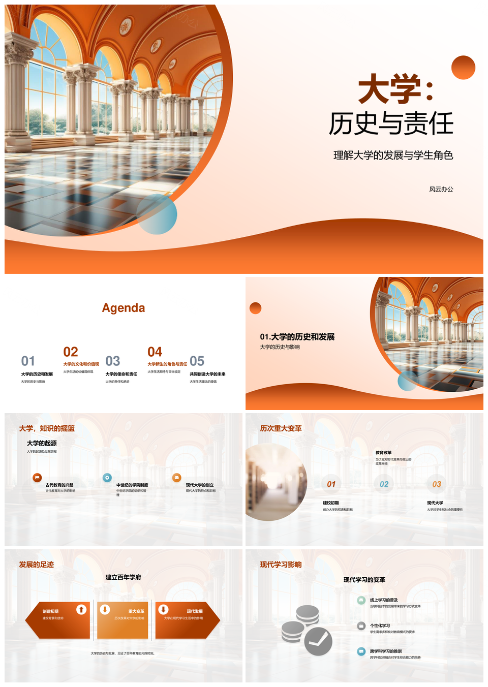大学教育历史挑战技术进步推动个人未来发展PPT模板