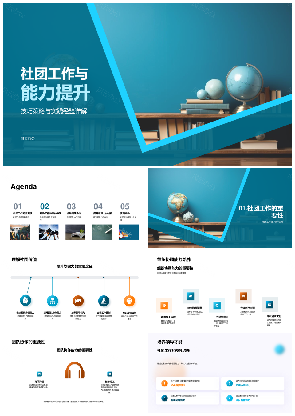 风云办公提供的社团实战能力提升领导协调时间技巧PPT模板,下载格式为pptx,一共28页,作品中文字及图均可以修改和编辑,图片更改请在作品中右键图片并更换,文字修改请直接点击文字进行修改。