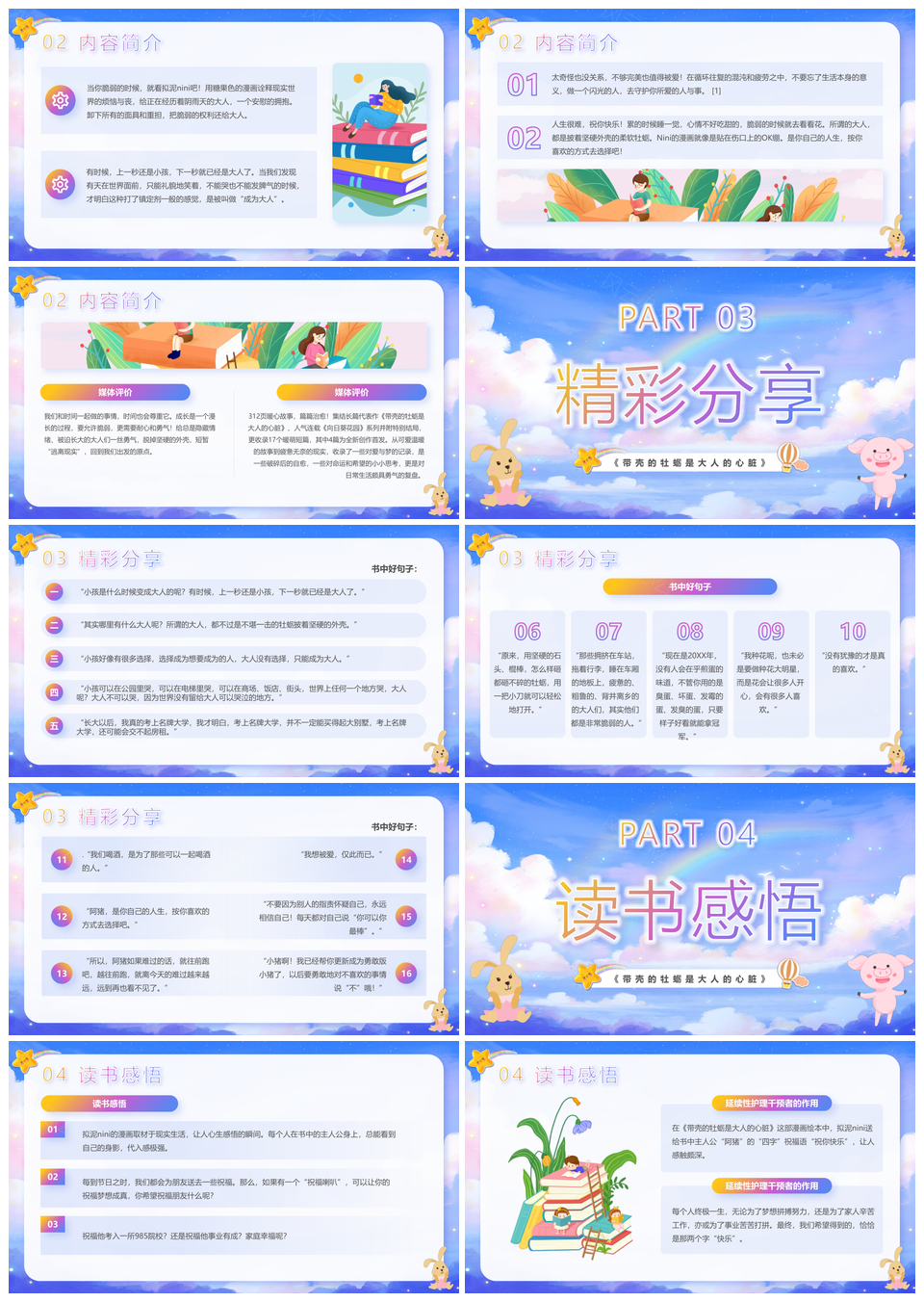 风云办公提供的绿色卡通可爱学校读书分享主题班会PPT模板,下载格式为pptx,一共21页,作品中文字及图均可以修改和编辑,图片更改请在作品中右键图片并更换,文字修改请直接点击文字进行修改。