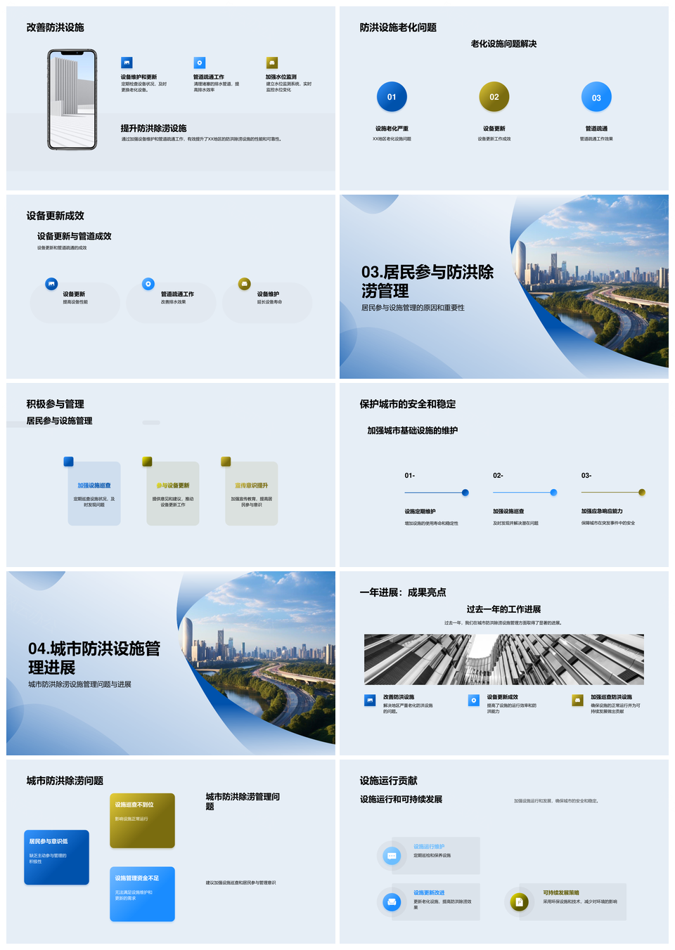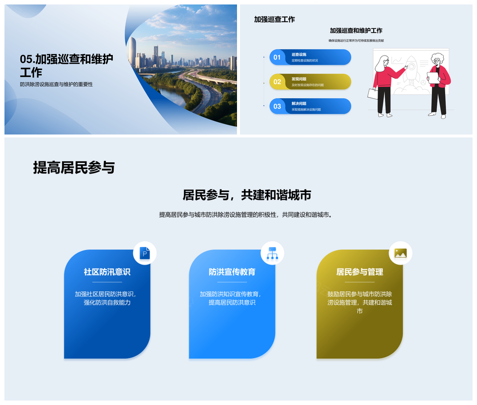 城市防洪设施管理年度总结进展问题解决居民建议PPT模板推荐