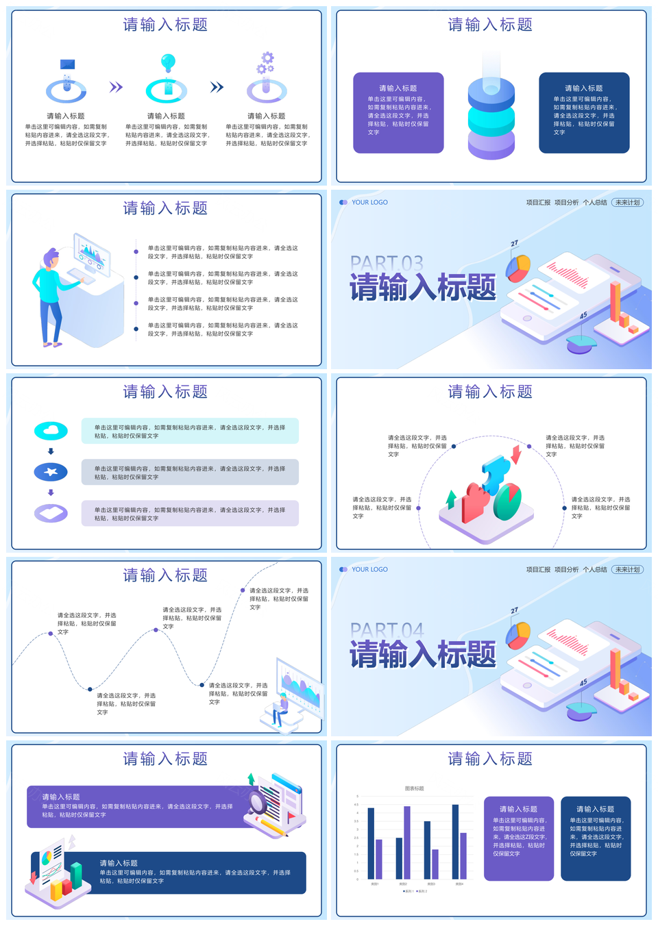 2025蓝紫渐变色微立体风工作总结汇报商务动态PPT模板