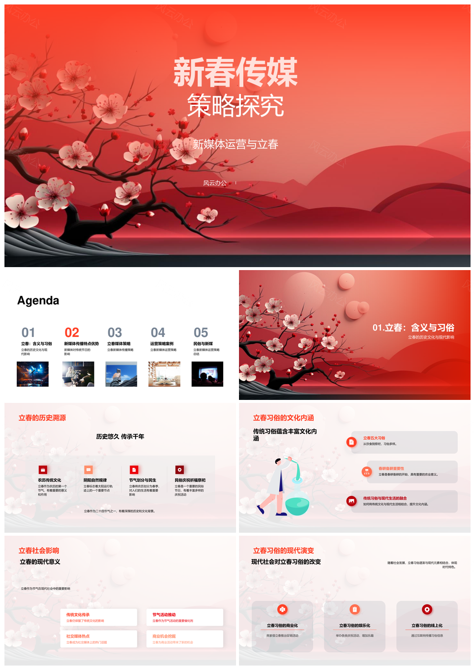 风云办公提供的立春新媒体运营与传统节日传播策略PPT模板,下载格式为pptx,一共27页,作品中文字及图均可以修改和编辑,图片更改请在作品中右键图片并更换,文字修改请直接点击文字进行修改。
