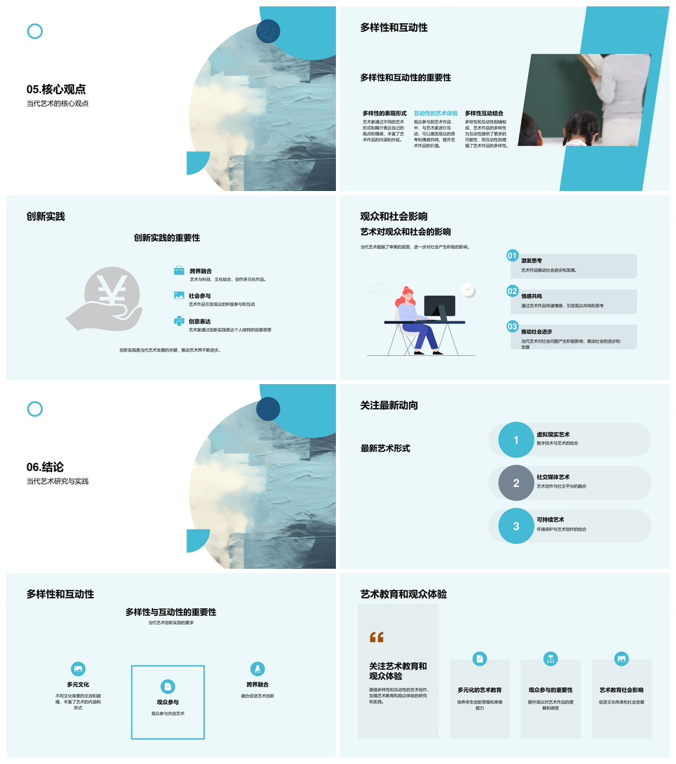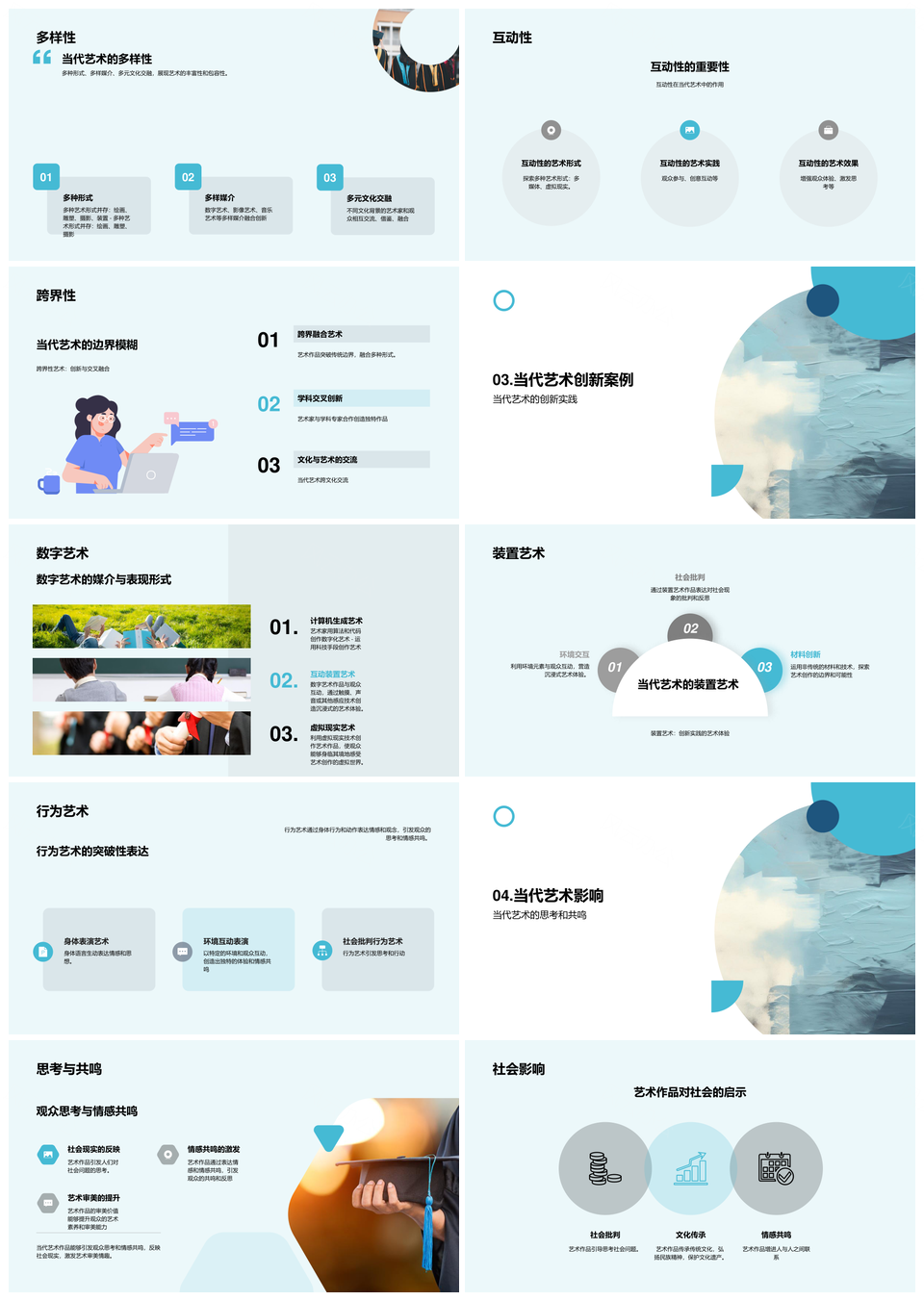 当代艺术流派创新实践理论多元互动数字抽象PPT模板推荐