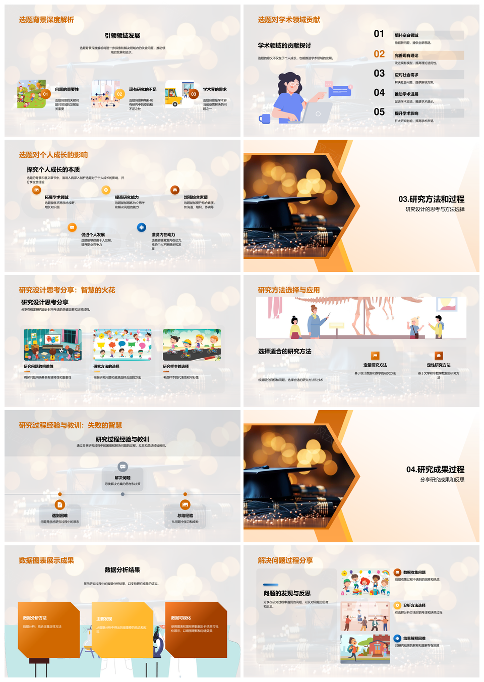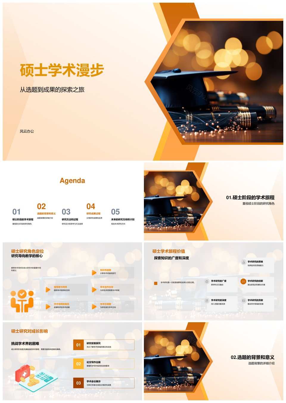 硕士学术研究方法选题设计数据成果影响毕业旅程PPT模板推荐