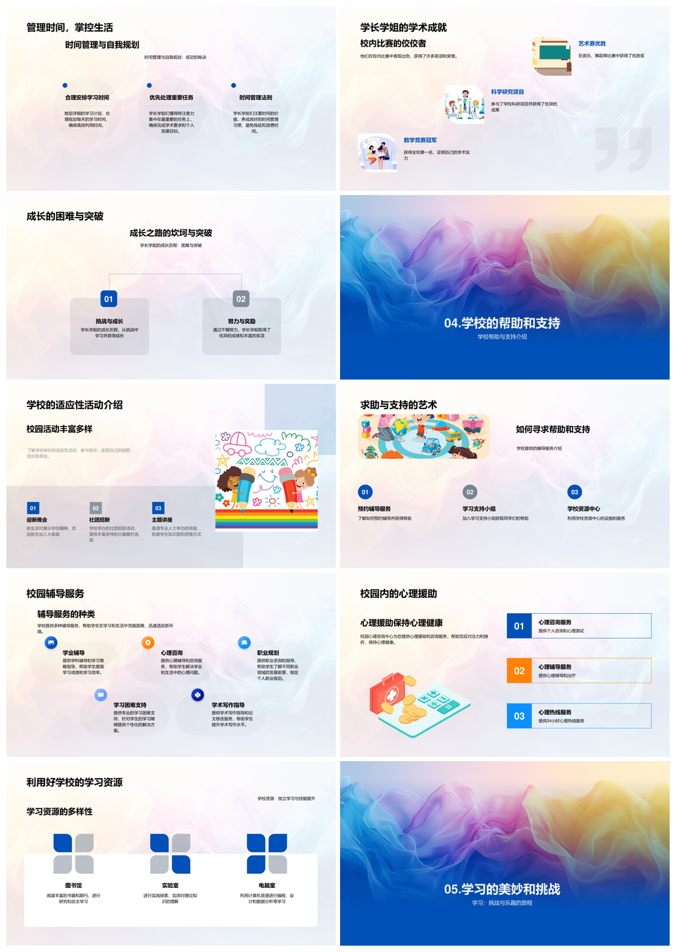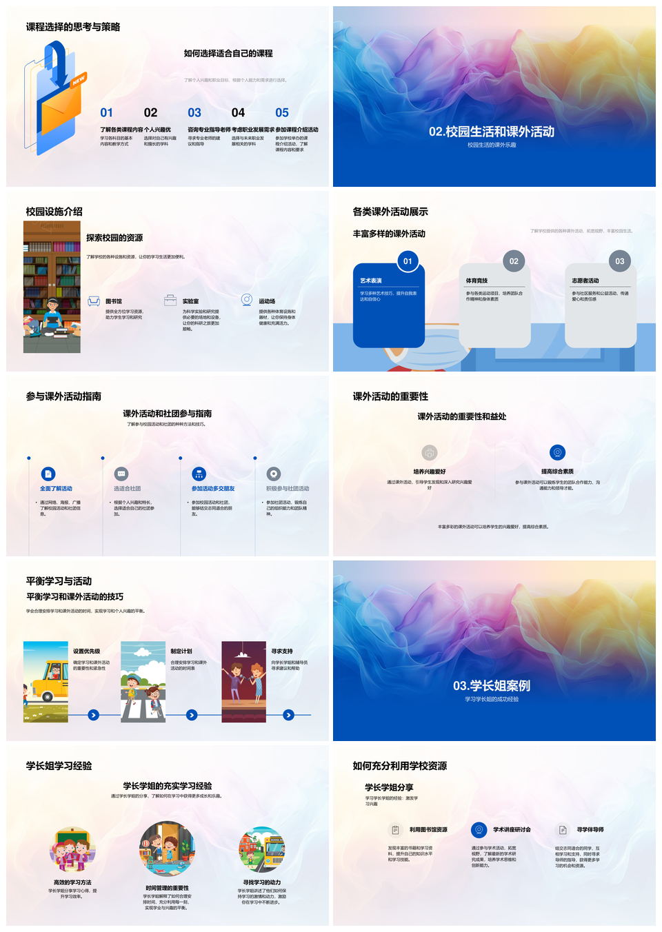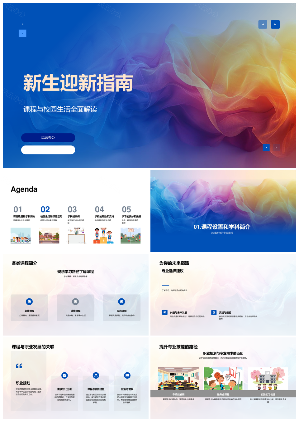 新生指南课程学科专业校园设施活动时间规划PPT模板推荐