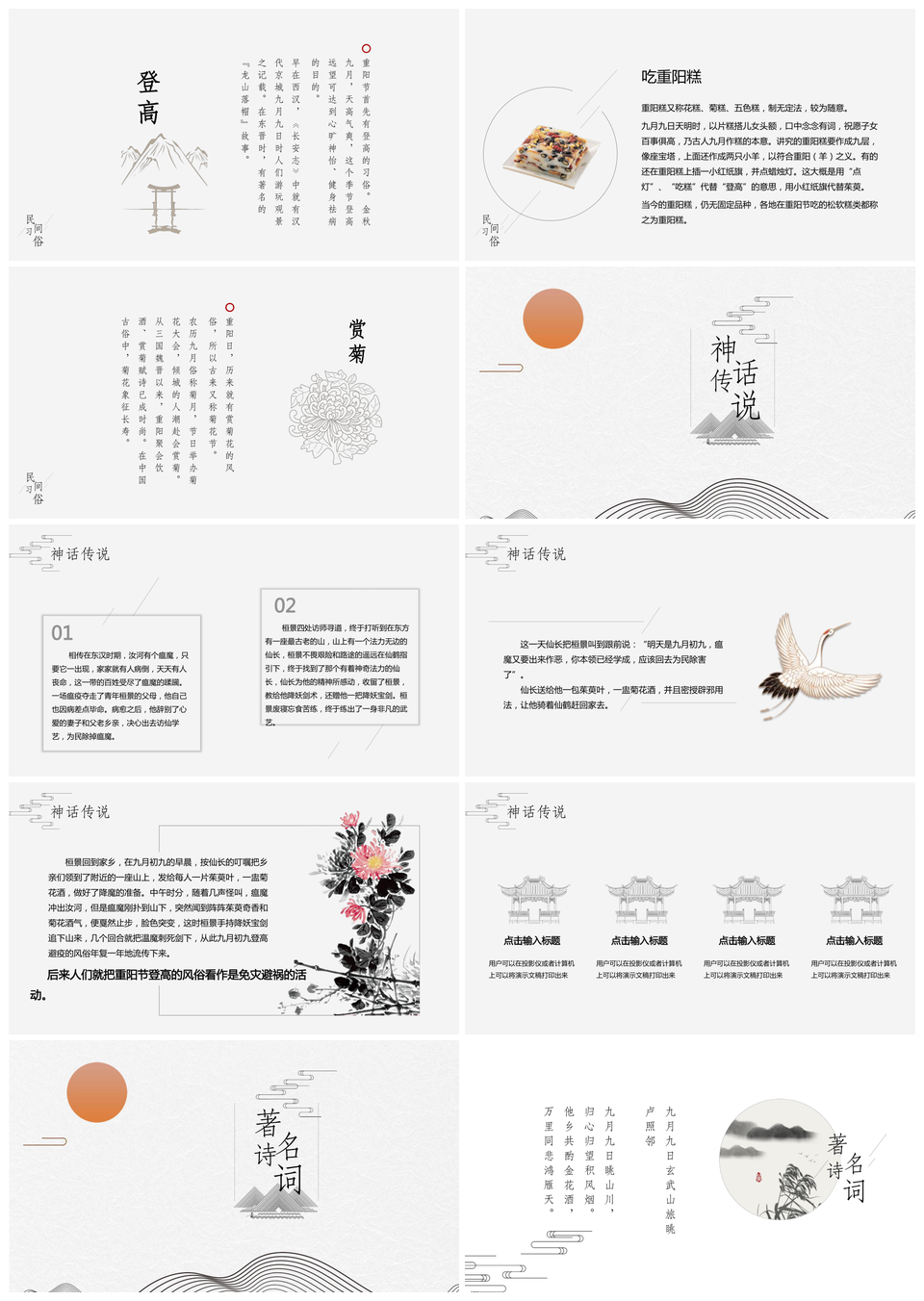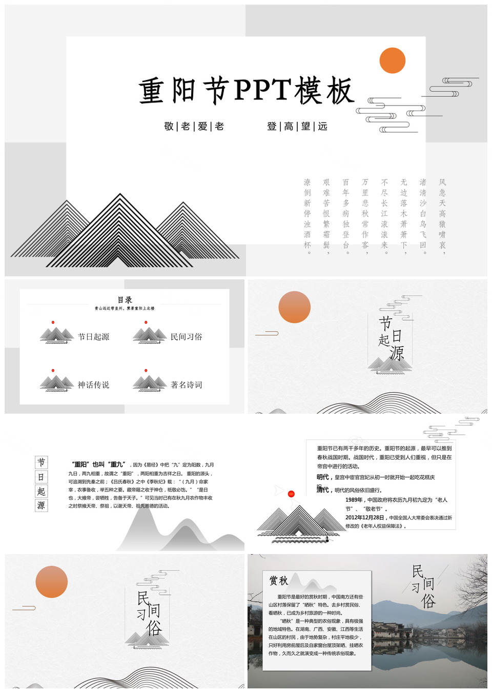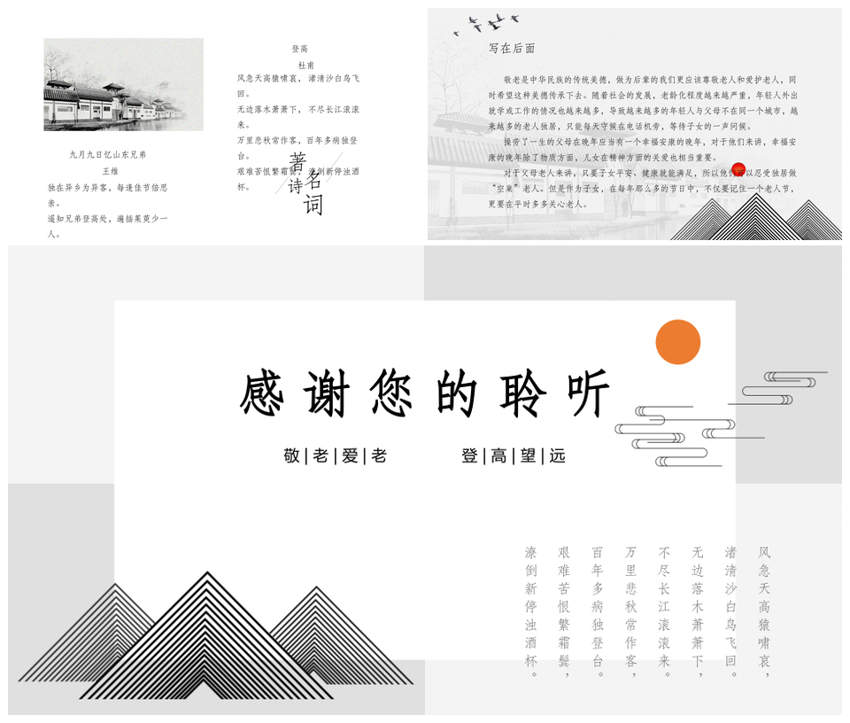 灰色简约文艺泼墨中国风淡雅重阳节PPT模板