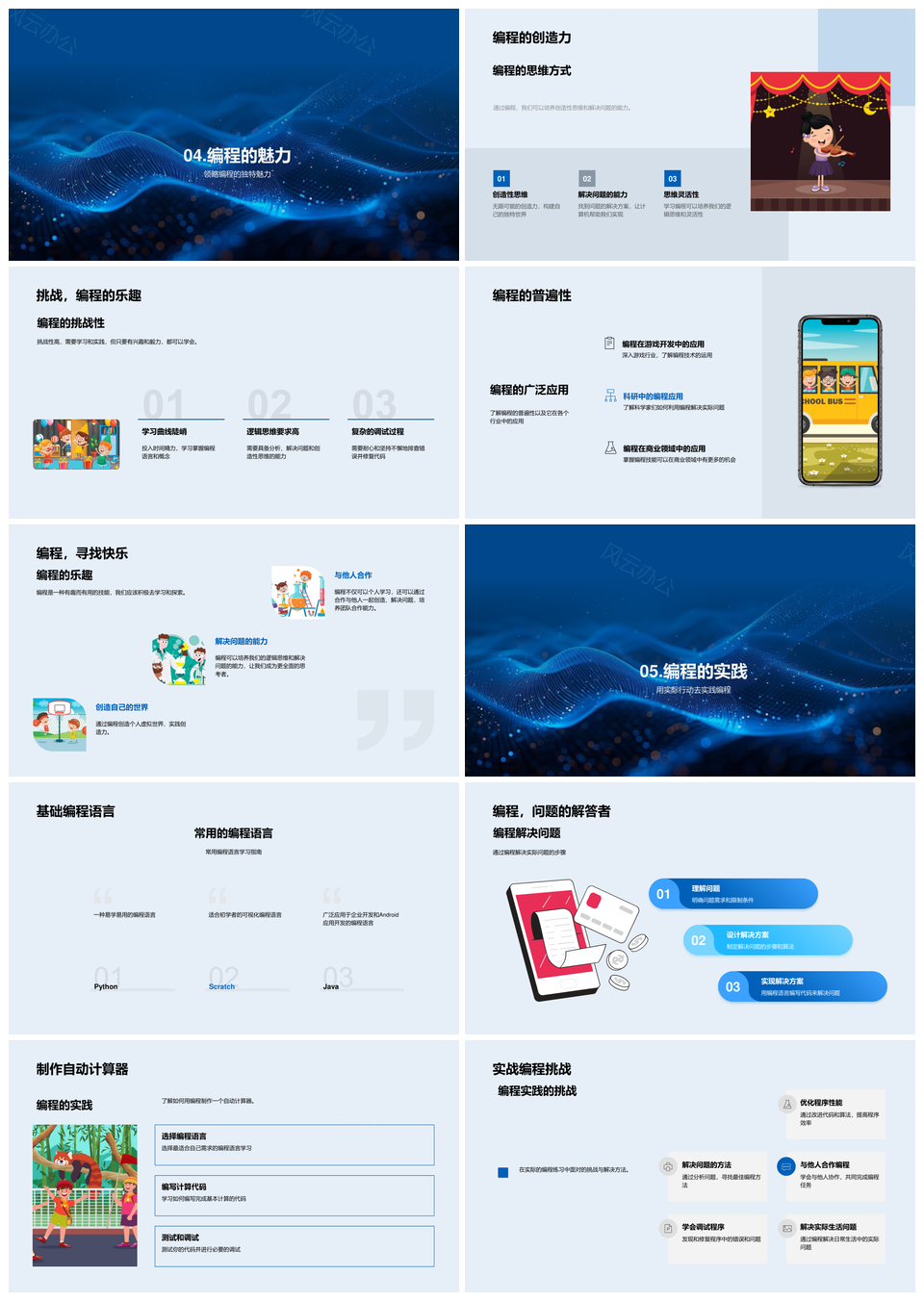 编程基础入门PythonScratch游戏动画软件开发PPT模板推荐