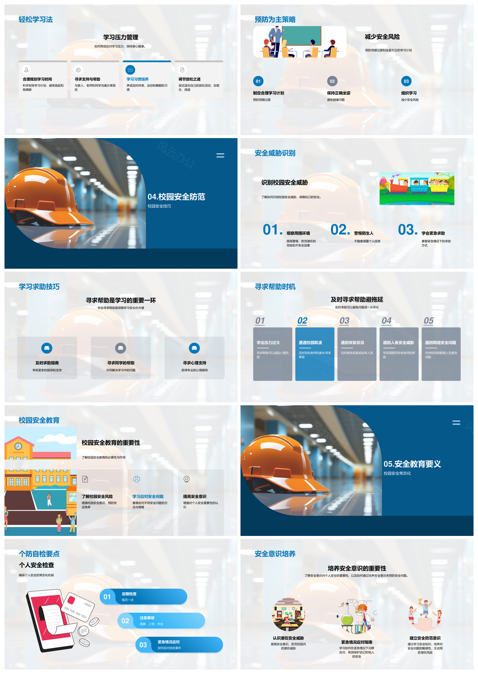 校园安全教育强化应急能力与头盔防护意识PPT模板
