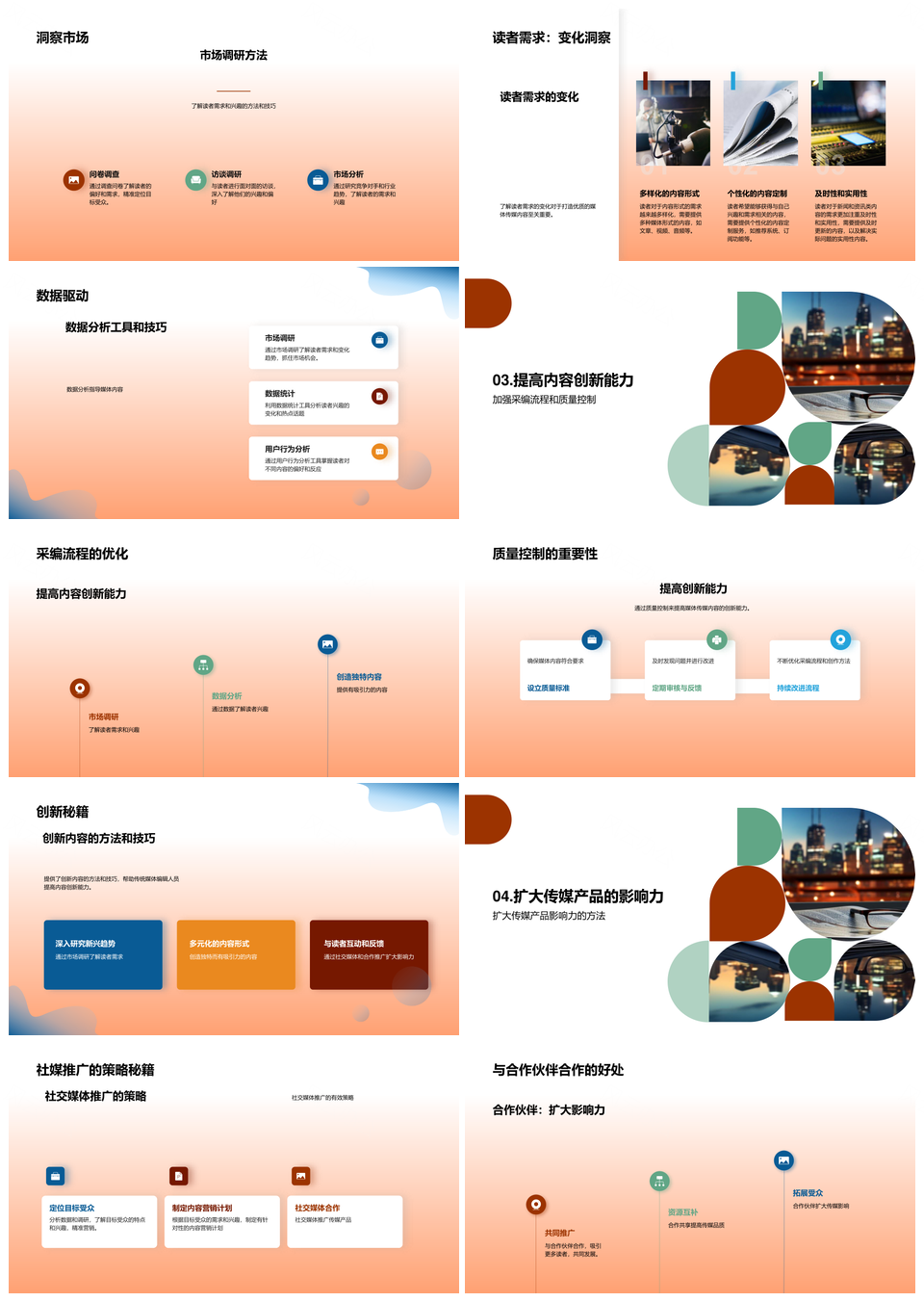 内容驱动传媒影响力需求数据优化采编质控PPT模板推荐