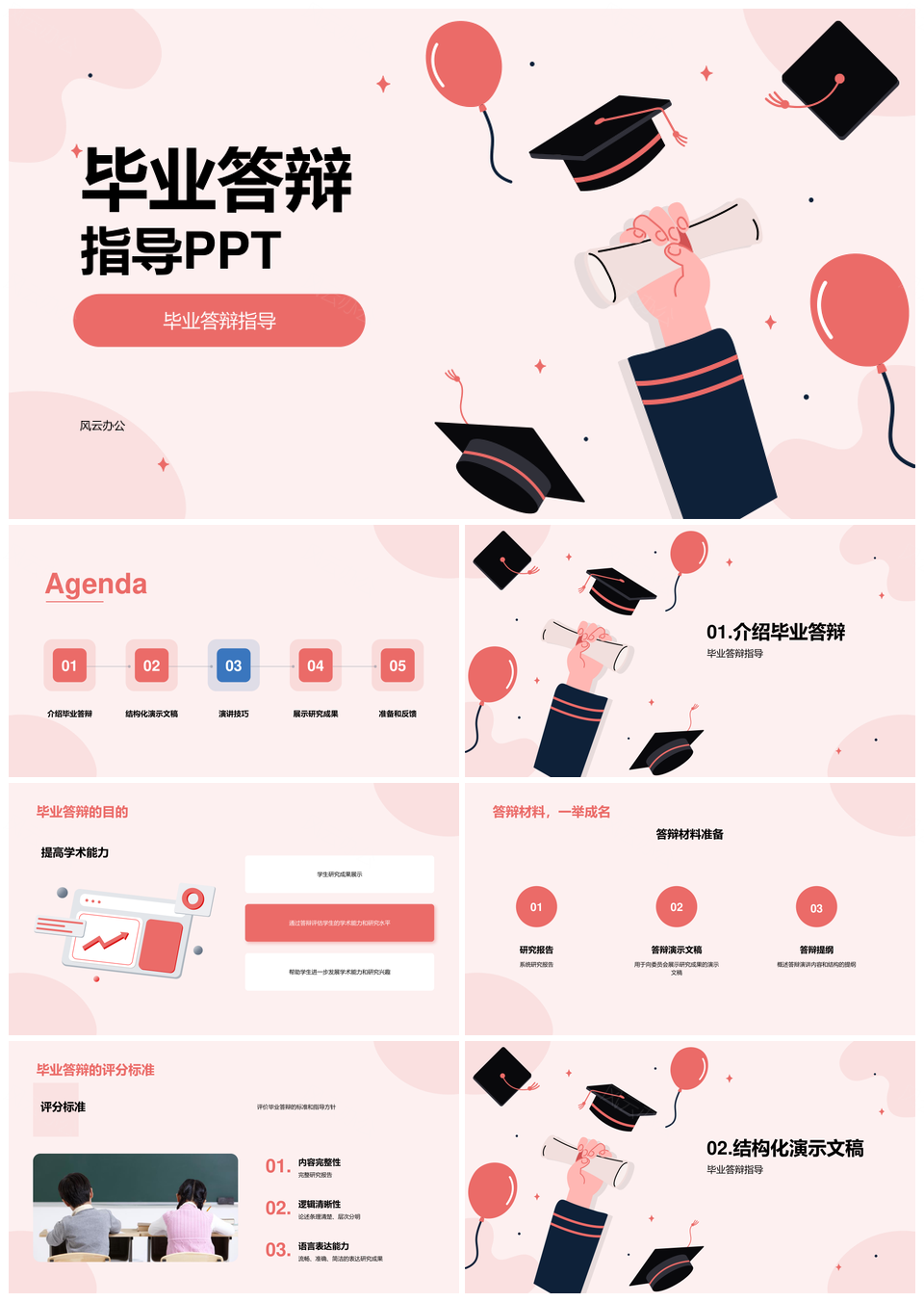 风云办公提供的粉色插画学术帽毕业答辩指导PPT模板,下载格式为pptx,一共21页,作品中文字及图均可以修改和编辑,图片更改请在作品中右键图片并更换,文字修改请直接点击文字进行修改。