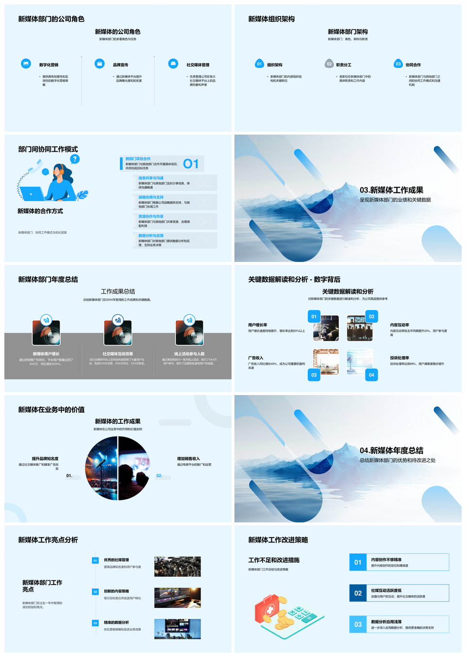 风云办公提供的新媒体季度总结业绩趋势策略分析PPT模板,下载格式为pptx,一共23页,作品中文字及图均可以修改和编辑,图片更改请在作品中右键图片并更换,文字修改请直接点击文字进行修改。