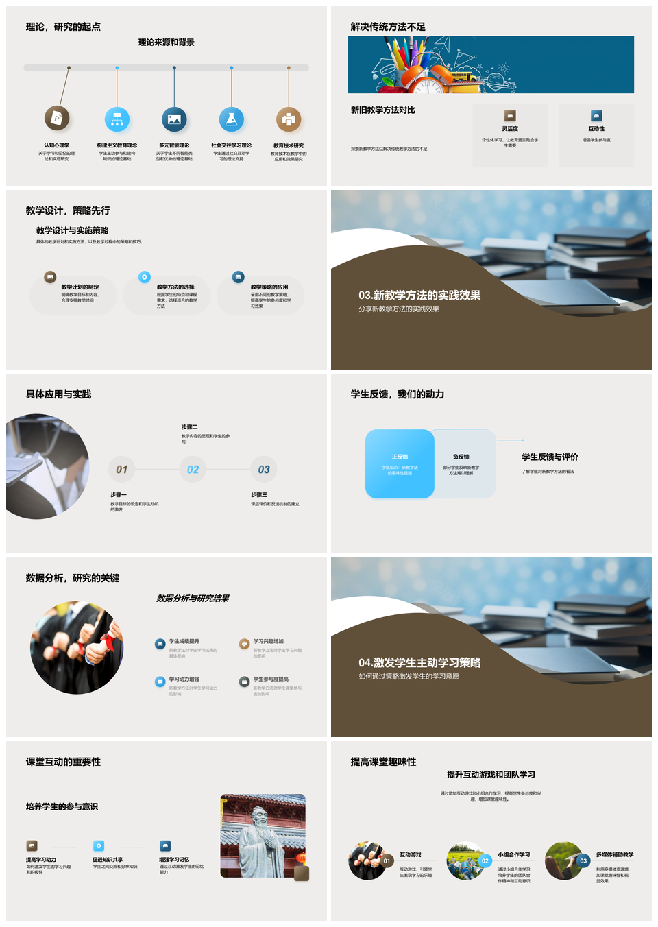 风云办公提供的教学创新理论实践提升课堂学习效果PPT模板,下载格式为pptx,一共23页,作品中文字及图均可以修改和编辑,图片更改请在作品中右键图片并更换,文字修改请直接点击文字进行修改。