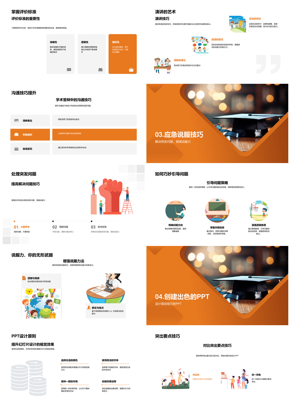 答辩无忧秘诀流程规则演讲沟通突发处理说服技巧PPT模板推荐