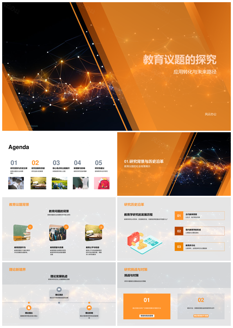 风云办公提供的教育议题应用转化与未来教学创新PPT模板,下载格式为pptx,一共25页,作品中文字及图均可以修改和编辑,图片更改请在作品中右键图片并更换,文字修改请直接点击文字进行修改。