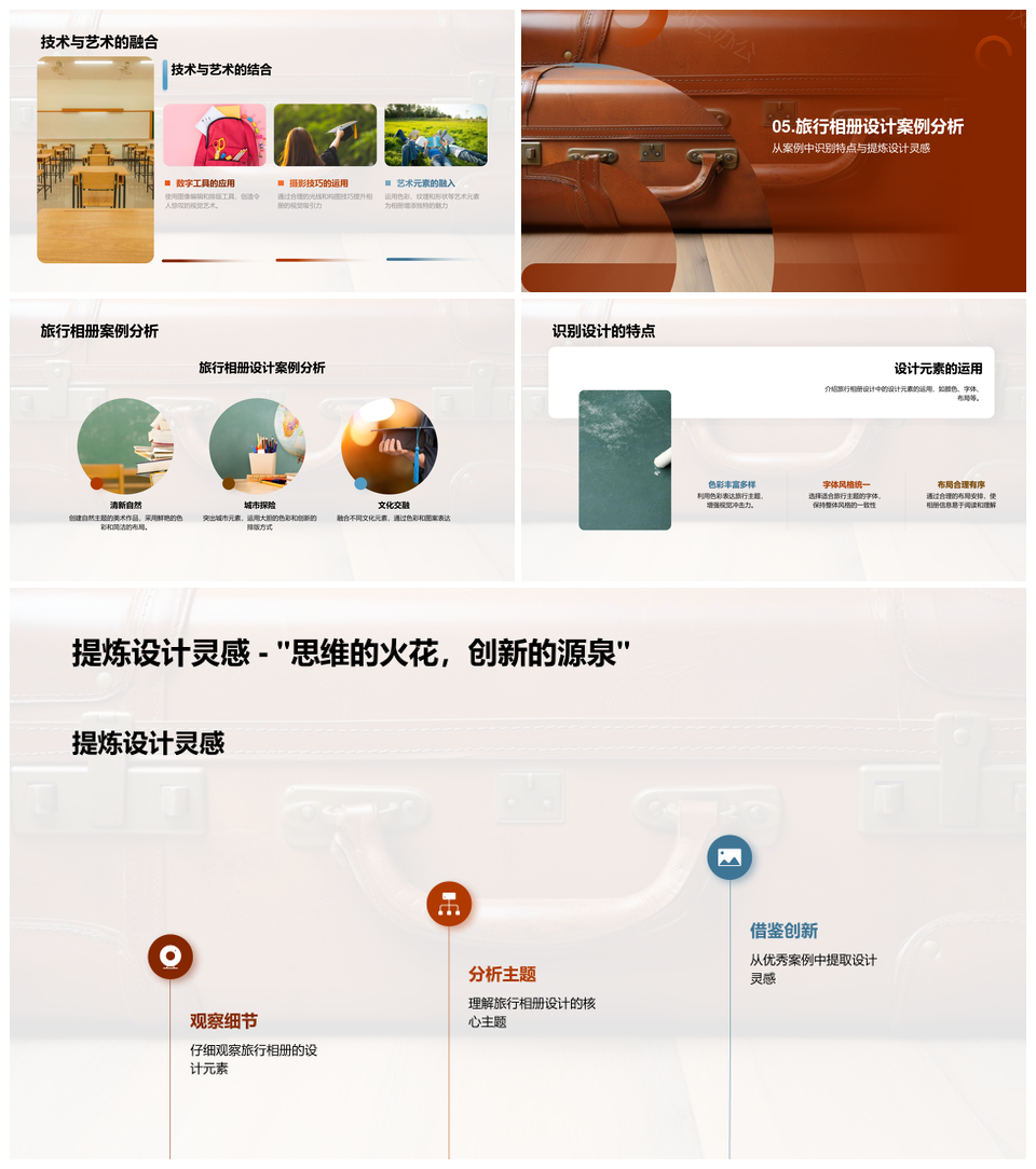 复古手提箱旅行相册设计理论色彩版面技巧PPT模板推荐