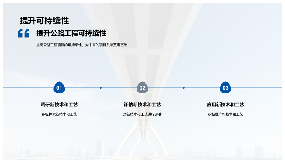 这是一张2025公路工程年度总结技术挑战与建设展望PPT模板,包含2025、公路工程、年度总结、技术挑战、建设展望等主题内容,也可用作2025公路工程年度总结技术挑战、公路工程年度总结技术挑战建设展望、2025公路工程年度总结、公路工程年度总结技术挑战、年度总结技术挑战建设展望、2025公路工程技术挑战、公路工程技术挑战建设展望、2025公路工程建设展望、公路工程年度总结建设展望、2025公路工程、公路工程年度总结、年度总结技术挑战、技术挑战建设展望、公路工程建设展望、年度总结建设展望等PPT场景使用。 风云办公提供的2025公路工程年度总结技术挑战与建设展望PPT模板,下载格式为pptx,一共19页,作品中文字及图均可以修改和编辑,图片更改请在作品中右键图片并更换,文字修改请直接点击文字进行修改。