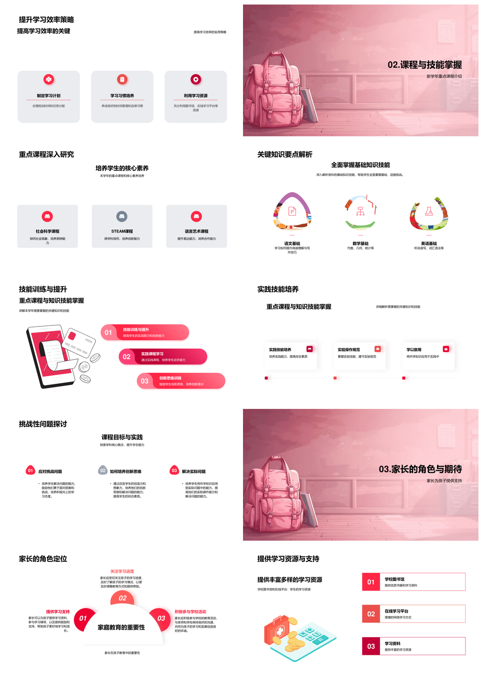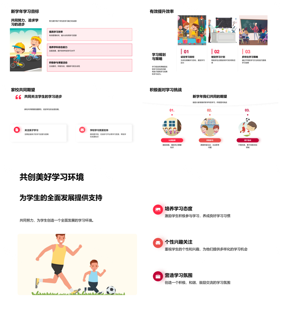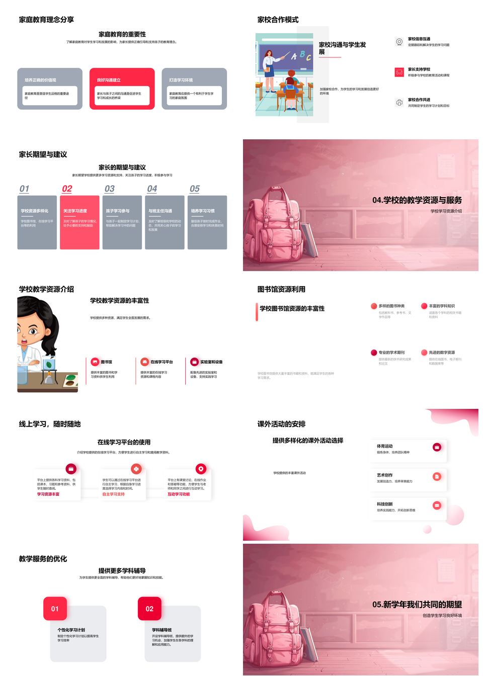新学年教学指导资源共享家校合作效率策略PPT模板推荐