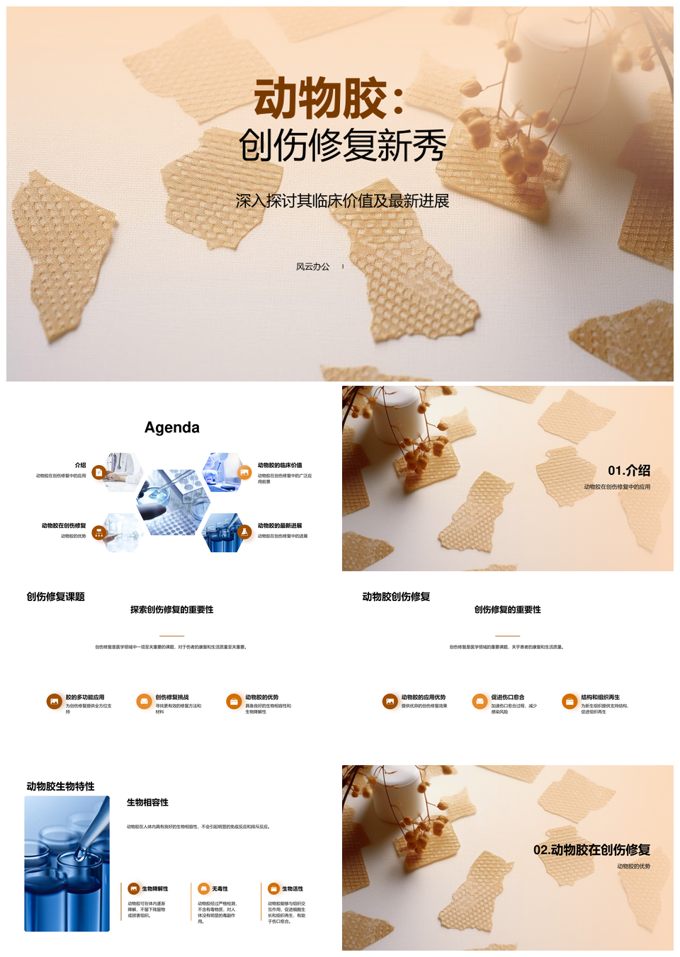 动物胶生物相容降解性促创伤修复闭合再生PPT模板推荐