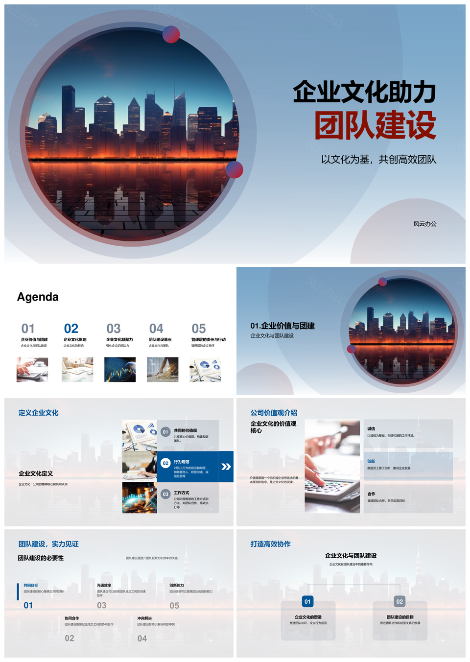 企业文化管理价值观使命团队商务培训媒体传媒企业大楼PPT模板