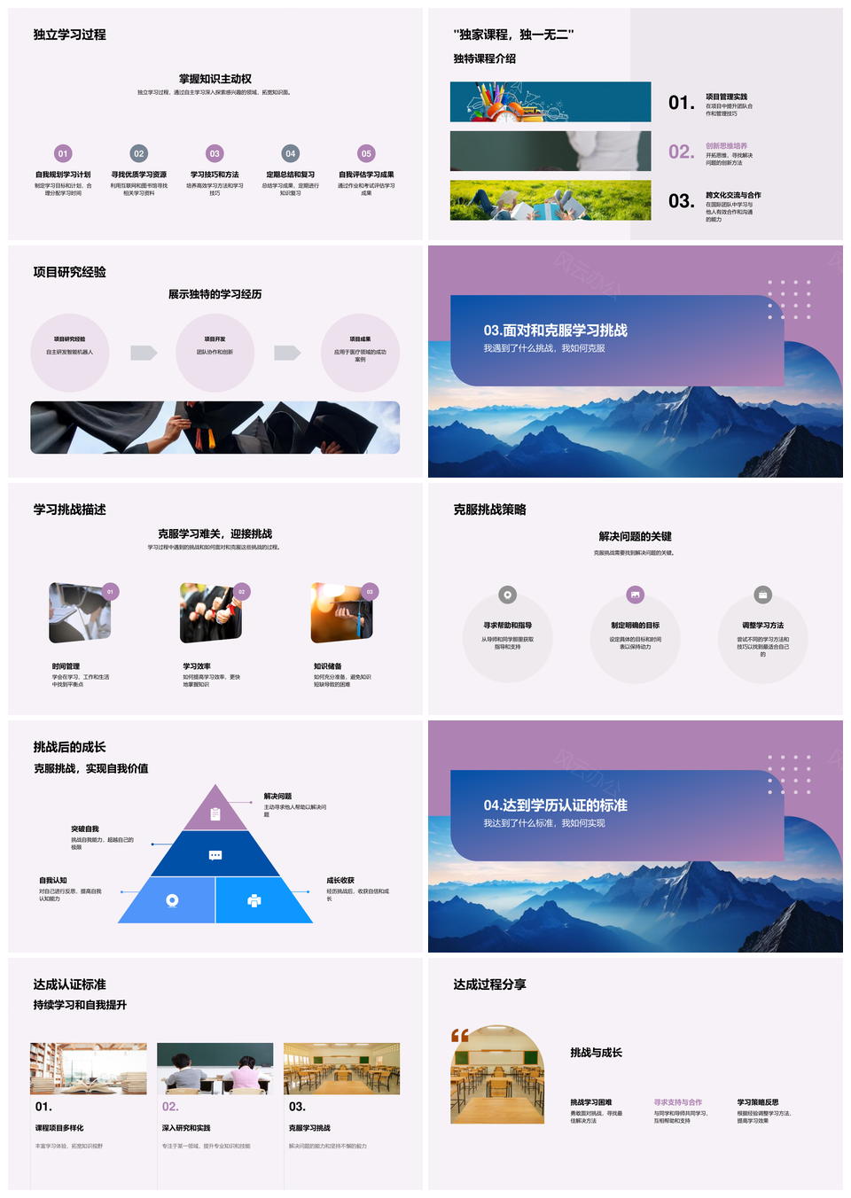 风云办公提供的逆境求学挑战认证独特课程答辩经历PPT模板,下载格式为pptx,一共23页,作品中文字及图均可以修改和编辑,图片更改请在作品中右键图片并更换,文字修改请直接点击文字进行修改。