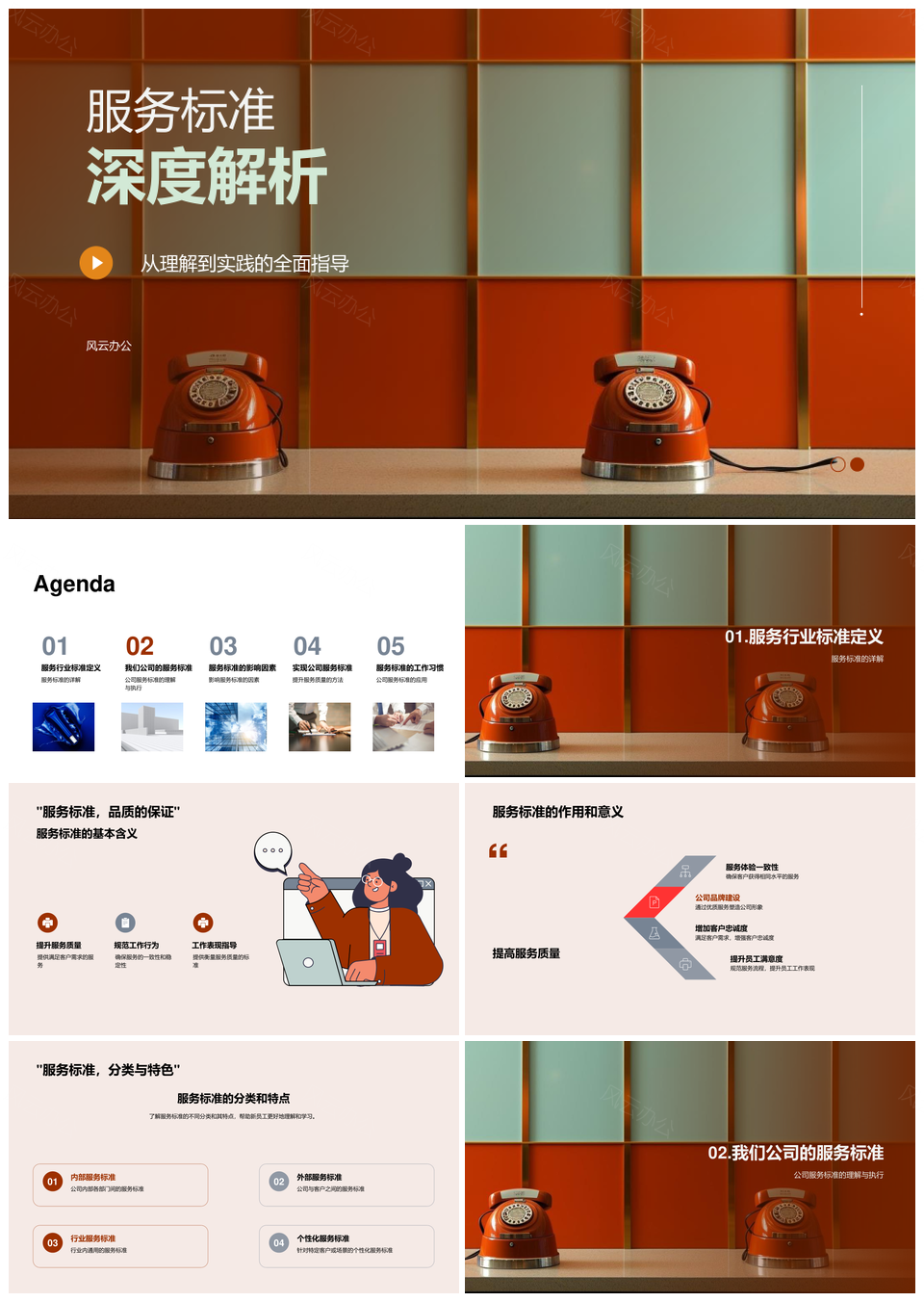 风云办公提供的服务标准五大要素与行业培训解析PPT模板,下载格式为pptx,一共23页,作品中文字及图均可以修改和编辑,图片更改请在作品中右键图片并更换,文字修改请直接点击文字进行修改。