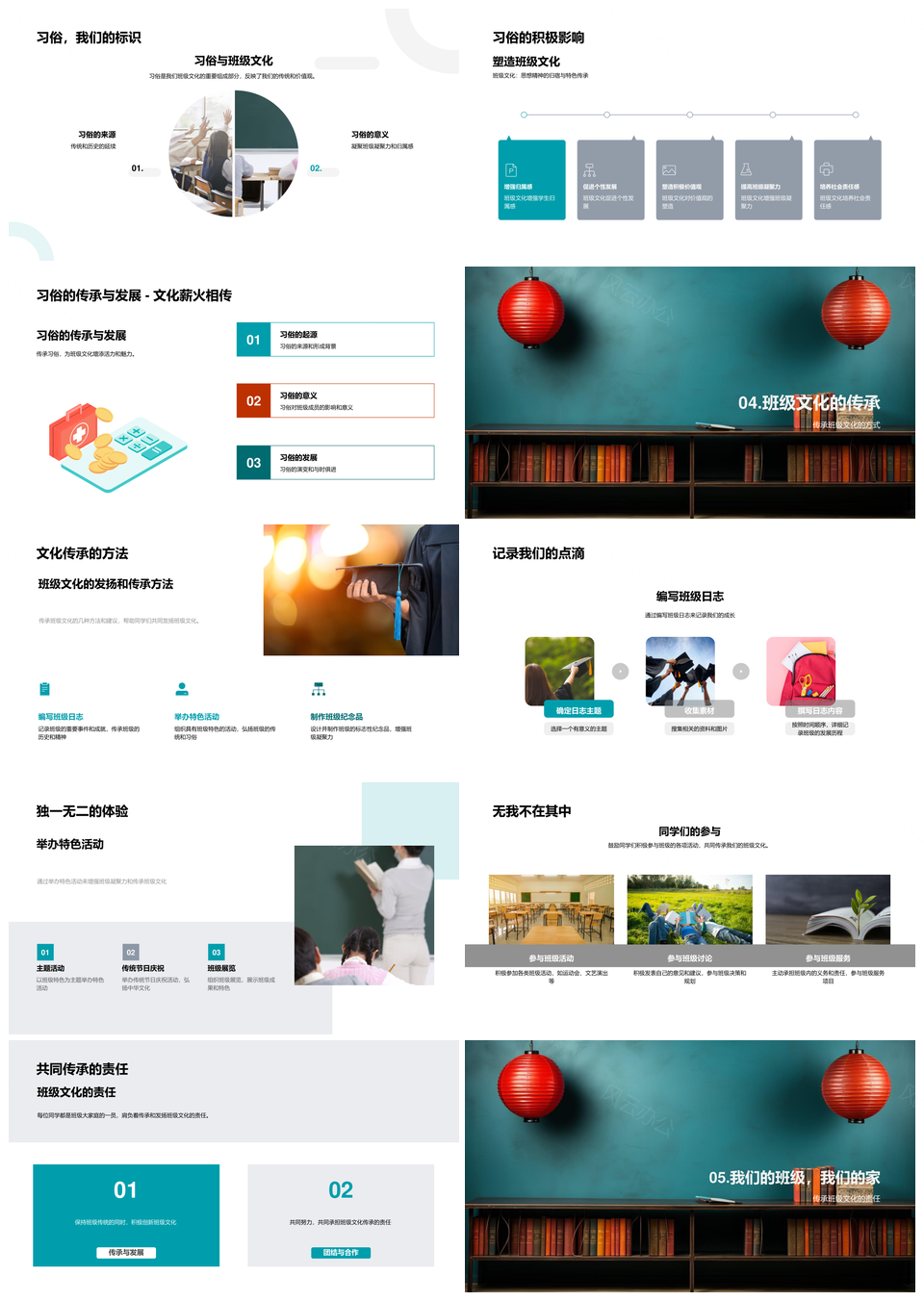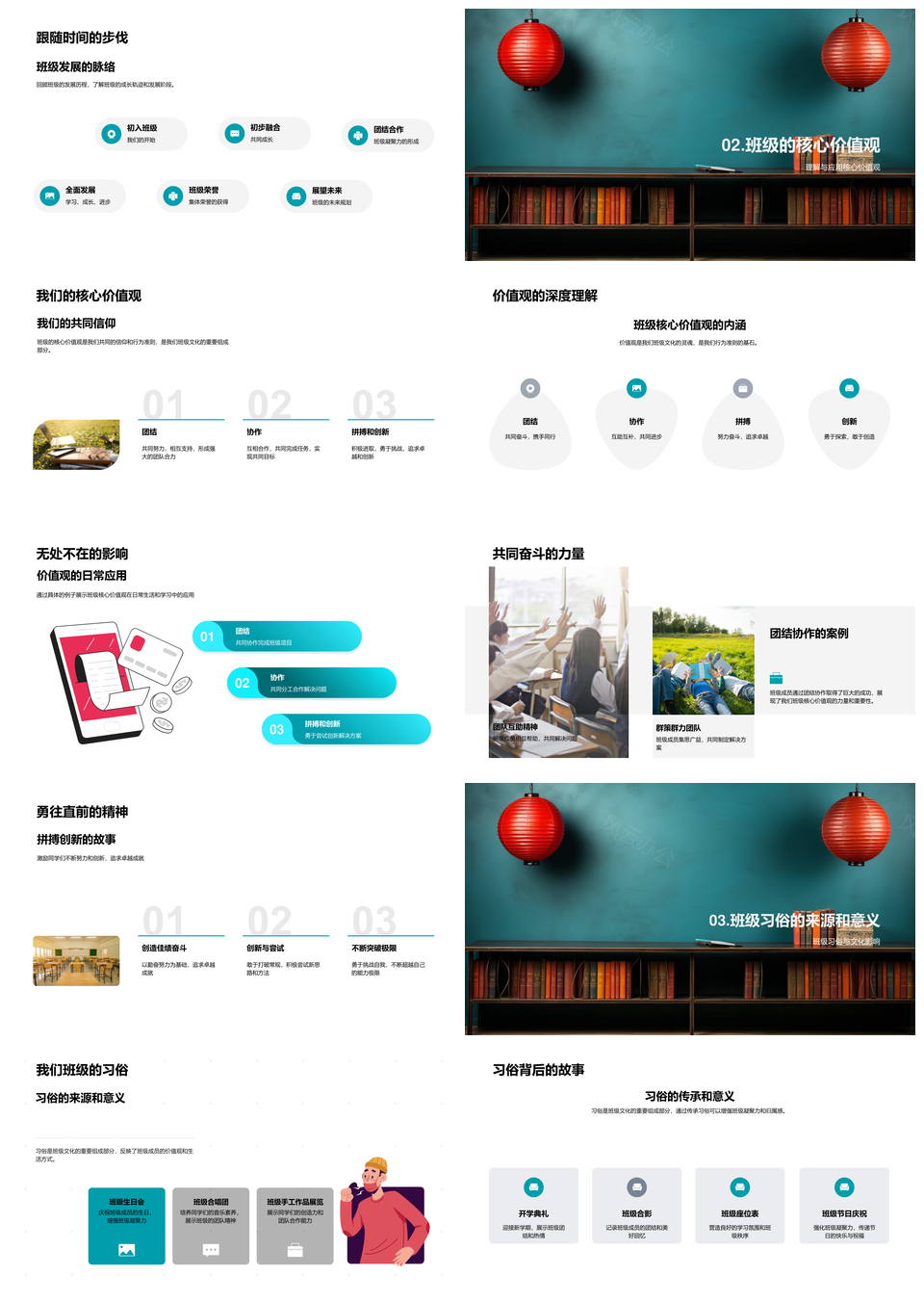这是一张班级文化传承核心价值观特色活动大家庭责任PPT模板,包含班级文化、传承、核心价值观、特色活动、大家庭、责任等主题内容,也可用作班级文化传承核心价值观、核心价值观特色活动大家庭责任、班级文化特色活动大家庭、传承核心价值观特色活动、班级文化传承核心价值观、核心价值观传承特色活动、文化传承核心价值观特色、特色活动大家庭责任、班级文化传承、传承核心价值观、核心价值观特色活动、特色活动大家庭、文化传承特色活动、班级责任传承、大家庭责任等PPT场景使用。 风云办公提供的班级文化传承核心价值观特色活动大家庭责任PPT模板,下载格式为pptx,一共33页,作品中文字及图均可以修改和编辑,图片更改请在作品中右键图片并更换,文字修改请直接点击文字进行修改。