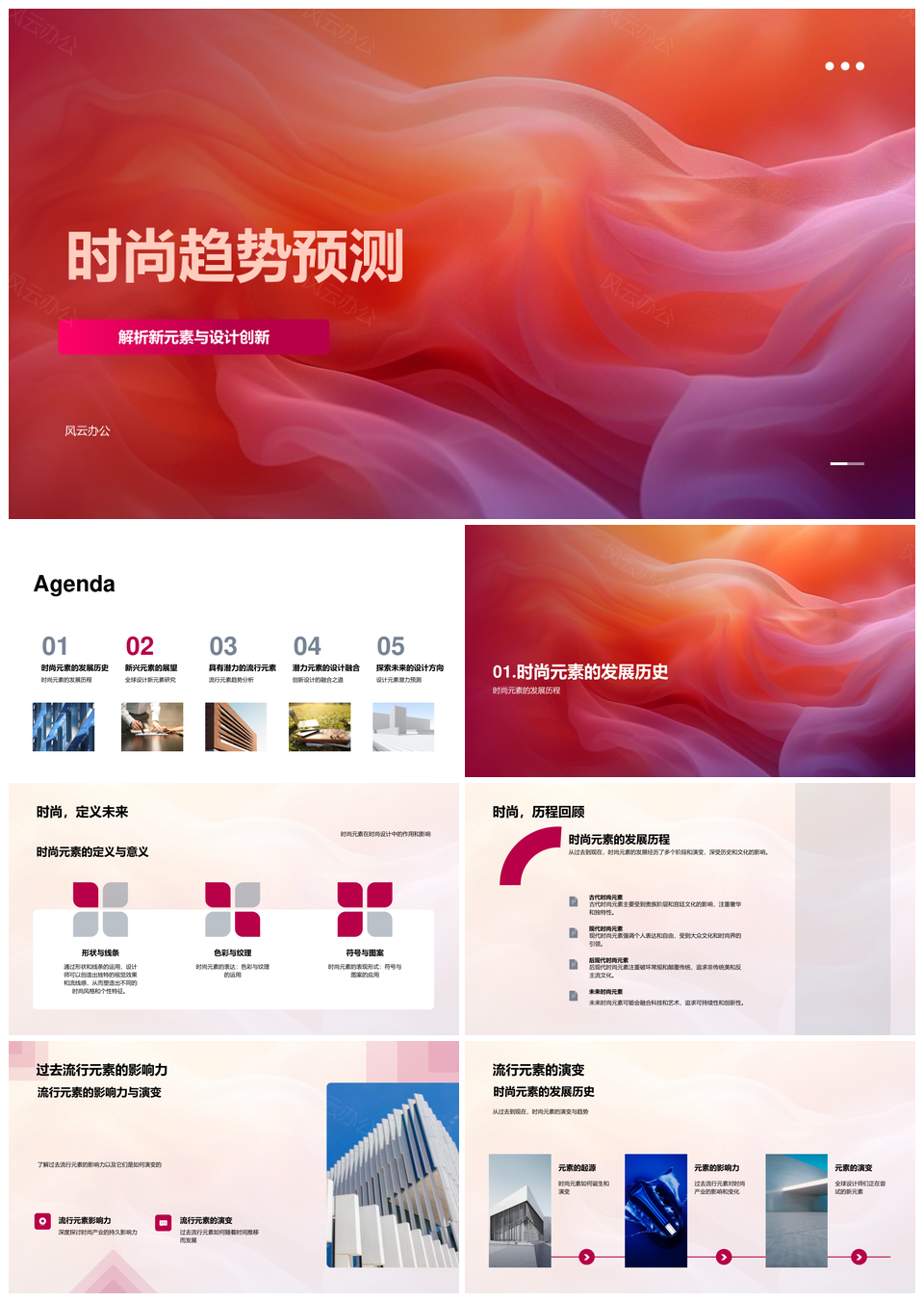 风云办公提供的时尚趋势预测新元素创新设计全球融合PPT模板,下载格式为pptx,一共24页,作品中文字及图均可以修改和编辑,图片更改请在作品中右键图片并更换,文字修改请直接点击文字进行修改。