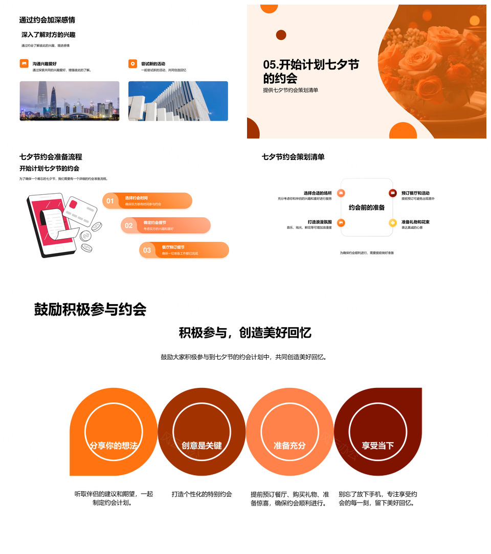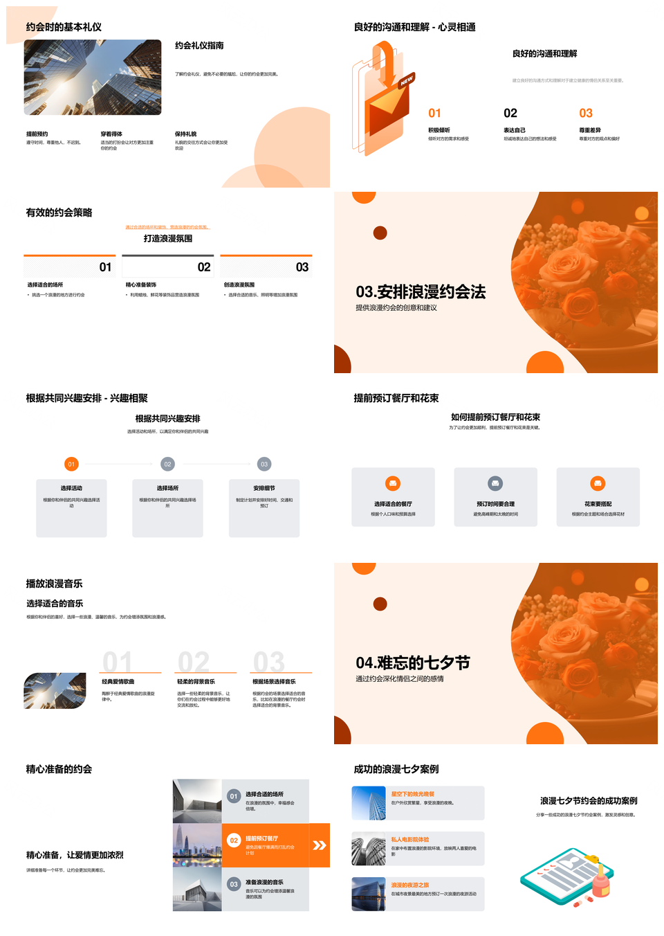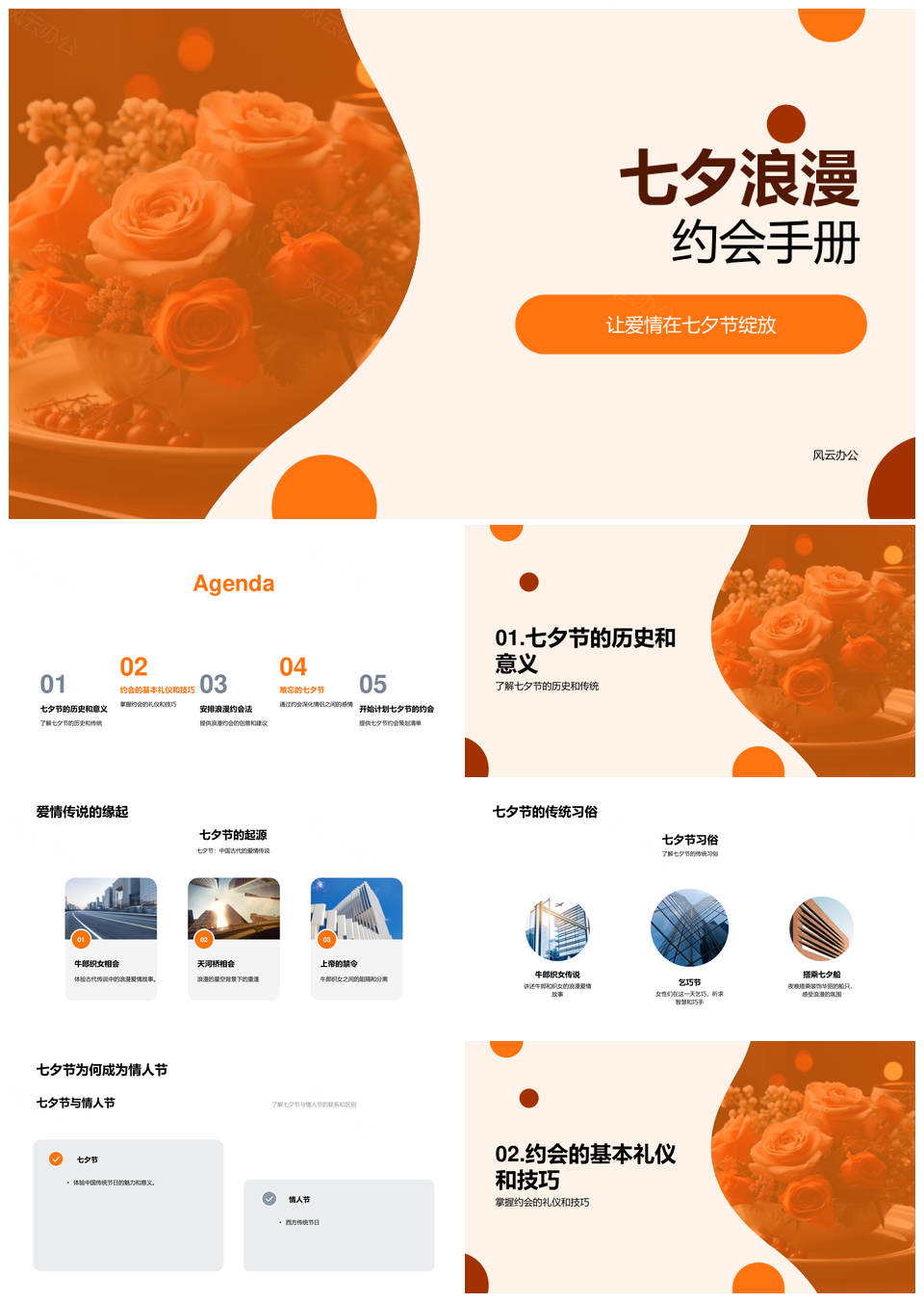 风云办公提供的七夕情侣浪漫约会礼仪策略玫瑰手册PPT模板,下载格式为pptx,一共23页,作品中文字及图均可以修改和编辑,图片更改请在作品中右键图片并更换,文字修改请直接点击文字进行修改。