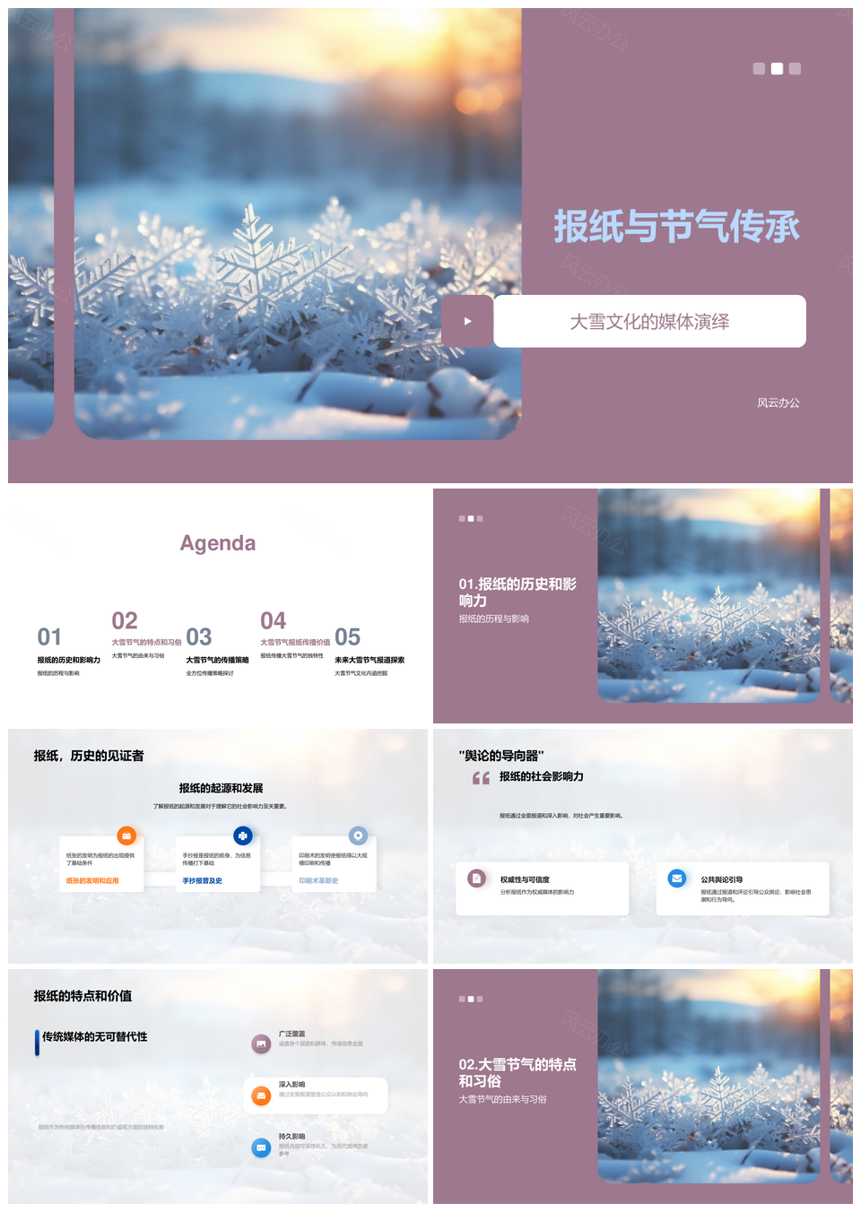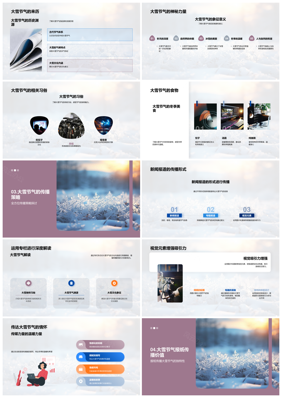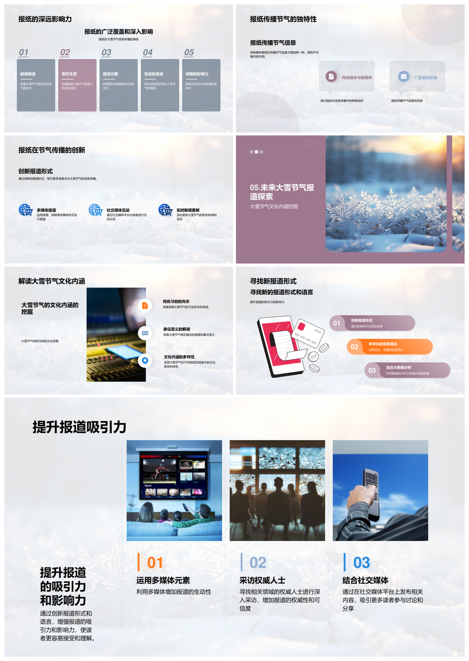 报纸大雪节气传承习俗文化报道PPT模板推荐