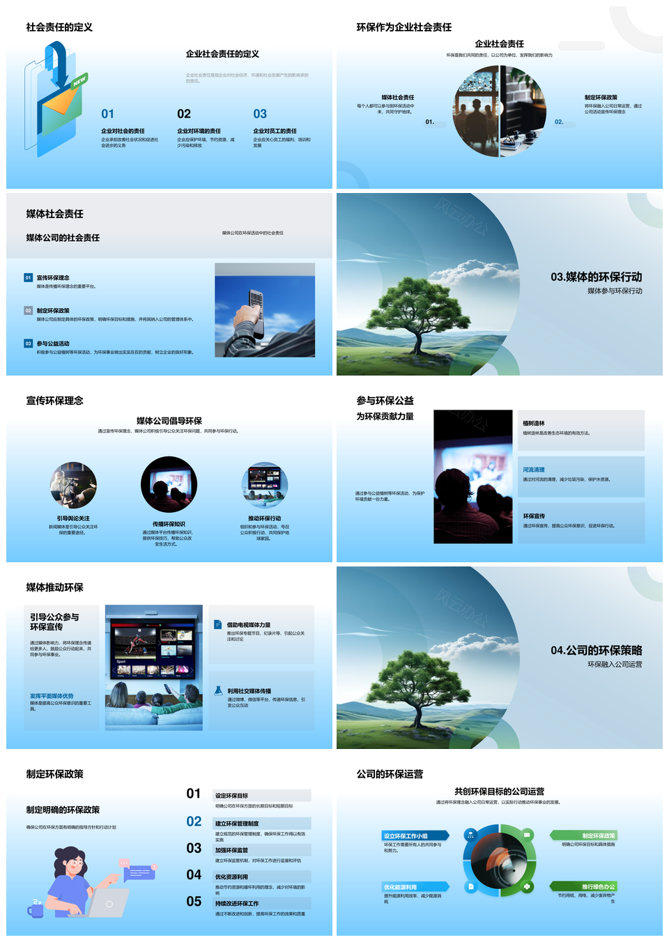 这是一张媒体引领绿色浪潮企业履责植树应对变暖PPT模板,包含媒体、引领、绿色浪潮、企业、履责、植树、应对、变暖等主题内容,也可用作媒体引领绿色浪潮、绿色浪潮企业履责、企业履责植树应对、履责植树应对变暖、引领绿色浪潮、绿色浪潮企业、浪潮企业履责、企业履责植树、履责植树应对、植树应对变暖、媒体引领、引领绿色、绿色浪潮、浪潮企业、企业履责等PPT场景使用。 风云办公提供的媒体引领绿色浪潮企业履责植树应对变暖PPT模板,下载格式为pptx,一共23页,作品中文字及图均可以修改和编辑,图片更改请在作品中右键图片并更换,文字修改请直接点击文字进行修改。