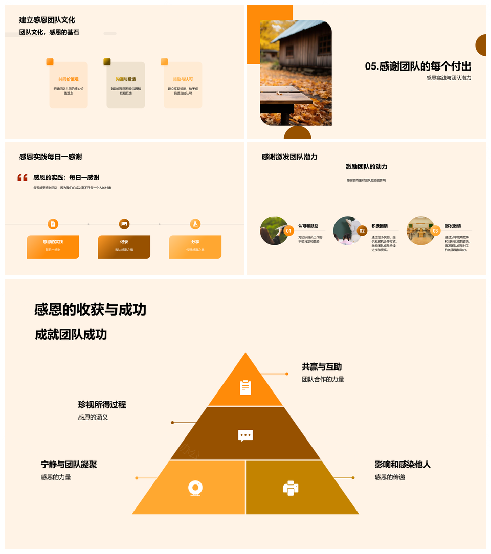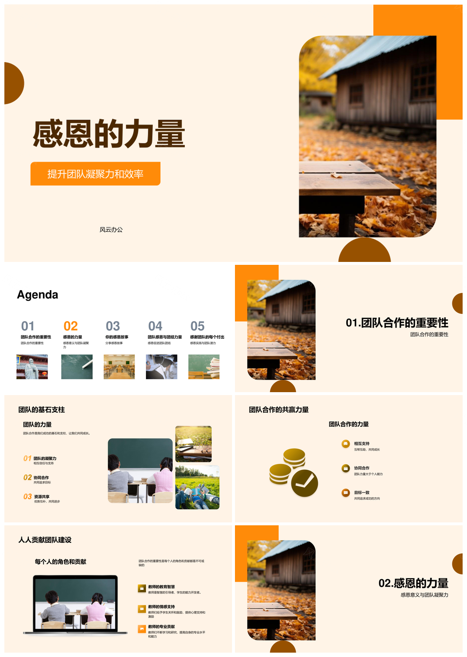 风云办公提供的感恩秋叶凝团队合力增效PPT模板,下载格式为pptx,一共23页,作品中文字及图均可以修改和编辑,图片更改请在作品中右键图片并更换,文字修改请直接点击文字进行修改。