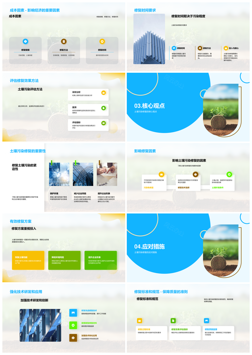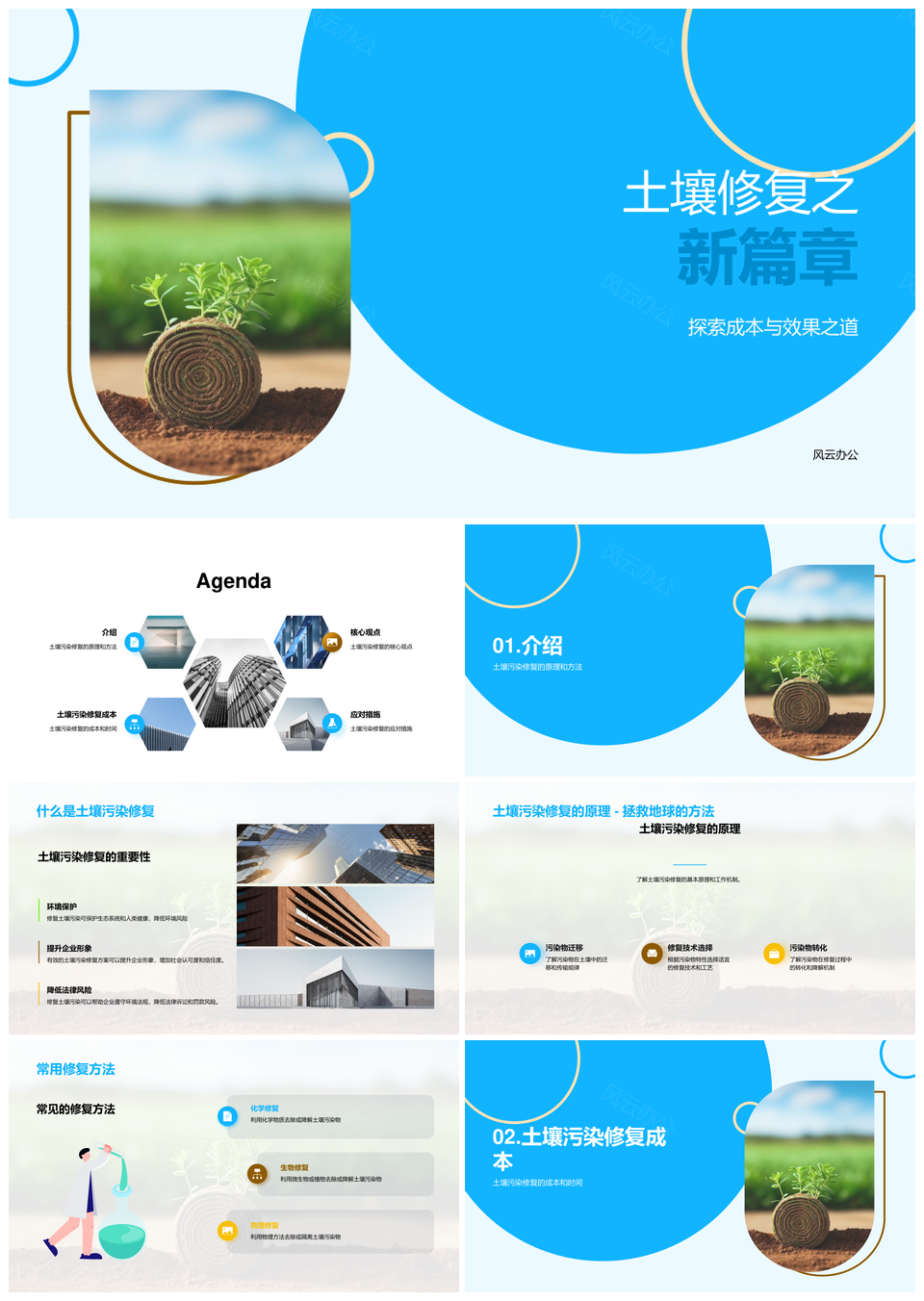 风云办公提供的土壤污染修复技术原理方法案例解读PPT模板,下载格式为pptx,一共19页,作品中文字及图均可以修改和编辑,图片更改请在作品中右键图片并更换,文字修改请直接点击文字进行修改。