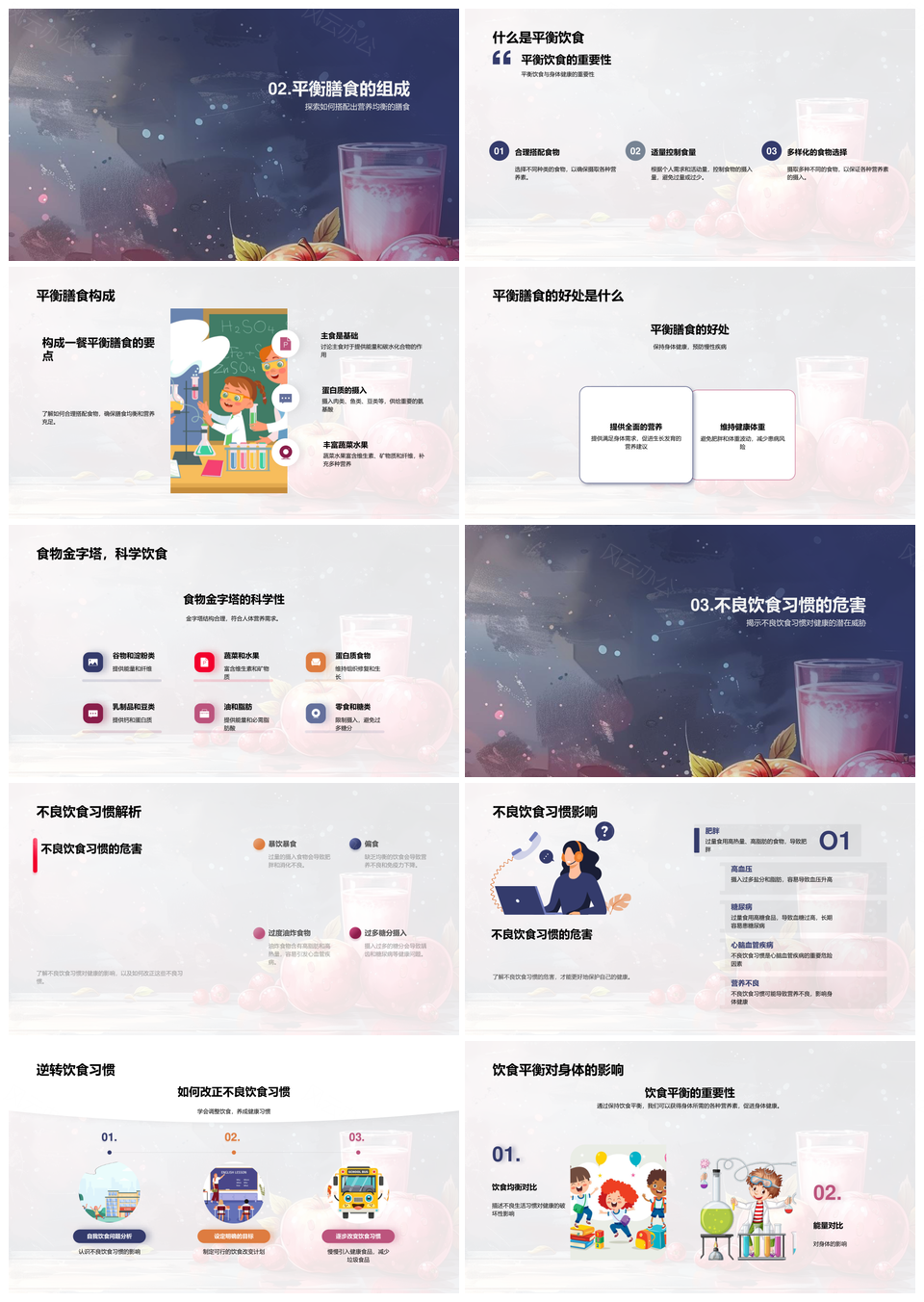 这是一张营养膳食讲座健康饮食均衡营养改善习惯PPT模板,包含营养膳食、讲座、健康、饮食、均衡、营养、改善、习惯等主题内容,也可用作健康饮食均衡营养、均衡营养改善习惯、营养膳食健康饮食、健康饮食改善习惯、营养膳食讲座健康、膳食健康饮食均衡、均衡营养健康饮食、改善习惯健康饮食、讲座健康饮食均衡、营养均衡营养改善、膳食讲座均衡营养、健康饮食均衡改善、改善习惯均衡营养、营养膳食均衡营养、健康均衡营养改善等PPT场景使用。 风云办公提供的营养膳食讲座健康饮食均衡营养改善习惯PPT模板,下载格式为pptx,一共28页,作品中文字及图均可以修改和编辑,图片更改请在作品中右键图片并更换,文字修改请直接点击文字进行修改。