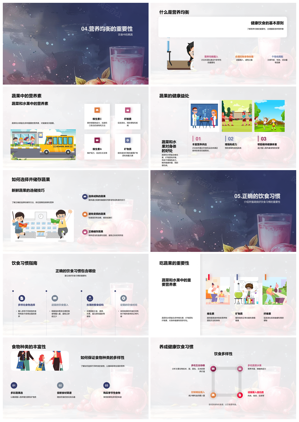 儿童均衡饮食纠正不良习惯健康营养食谱家长指南PPT模板
