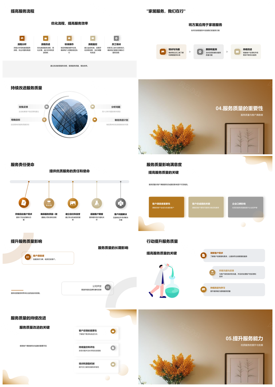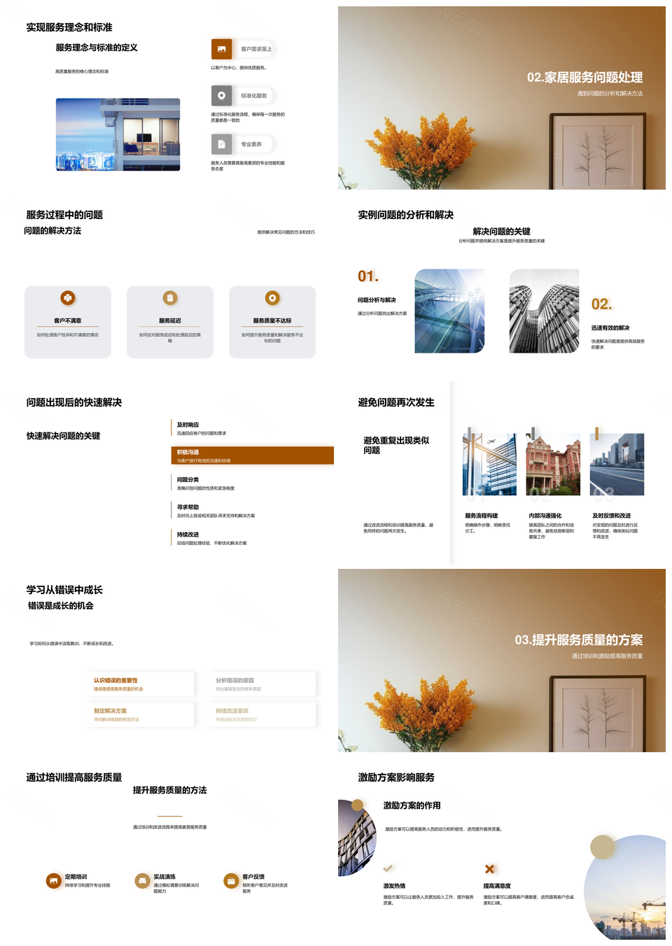 这是一张家居服务品质提升策略问题解决激励方案PPT模板,包含家居服务、品质提升、策略、问题、解决、激励方案等主题内容,也可用作家居服务品质提升、服务品质提升策略、服务品质提升、品质提升策略、策略问题解决、问题解决激励、解决激励方案、家居服务、服务品质、品质提升、提升策略、策略问题、问题解决、解决激励、激励方案等PPT场景使用。 风云办公提供的家居服务品质提升策略问题解决激励方案PPT模板,下载格式为pptx,一共33页,作品中文字及图均可以修改和编辑,图片更改请在作品中右键图片并更换,文字修改请直接点击文字进行修改。
