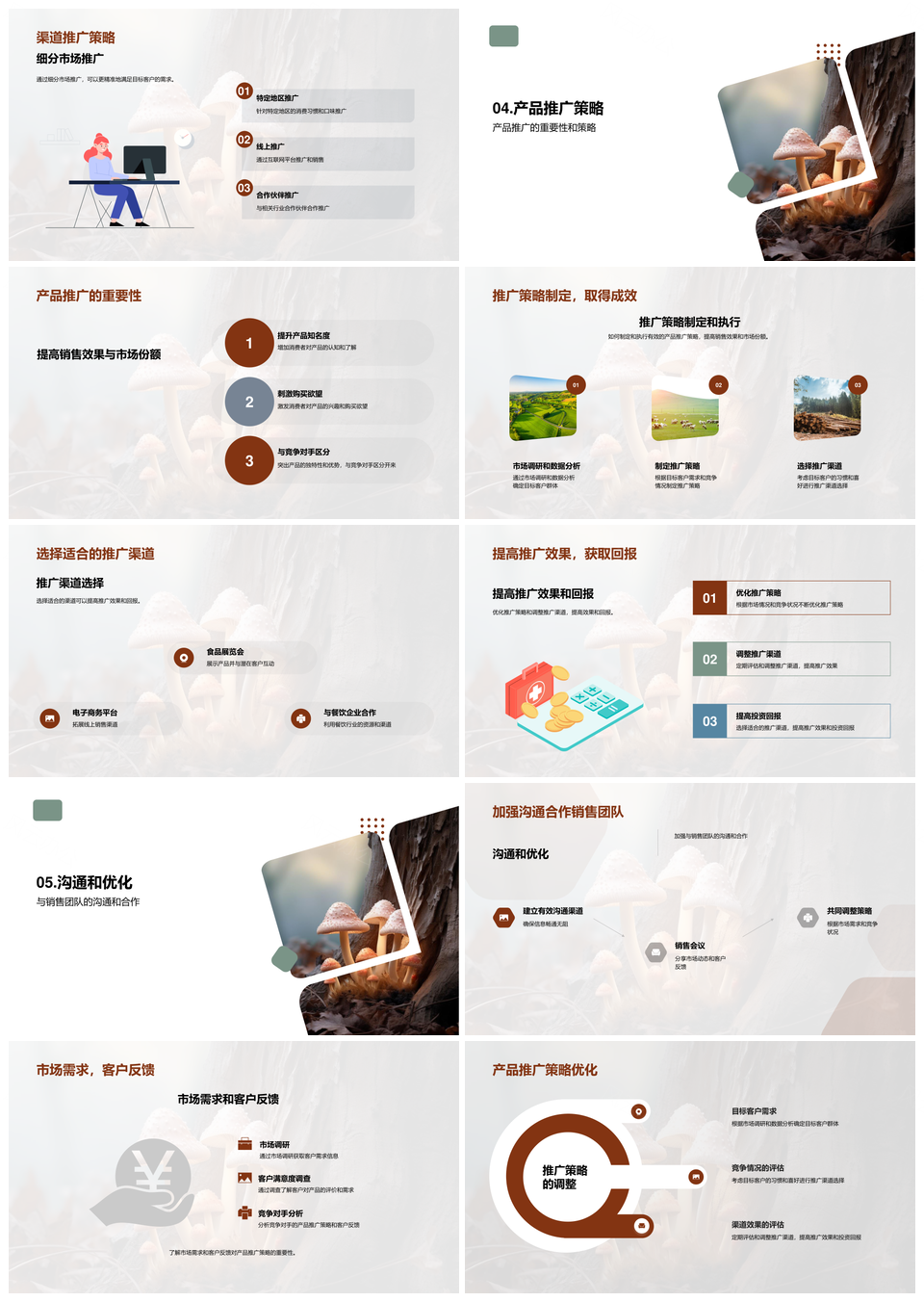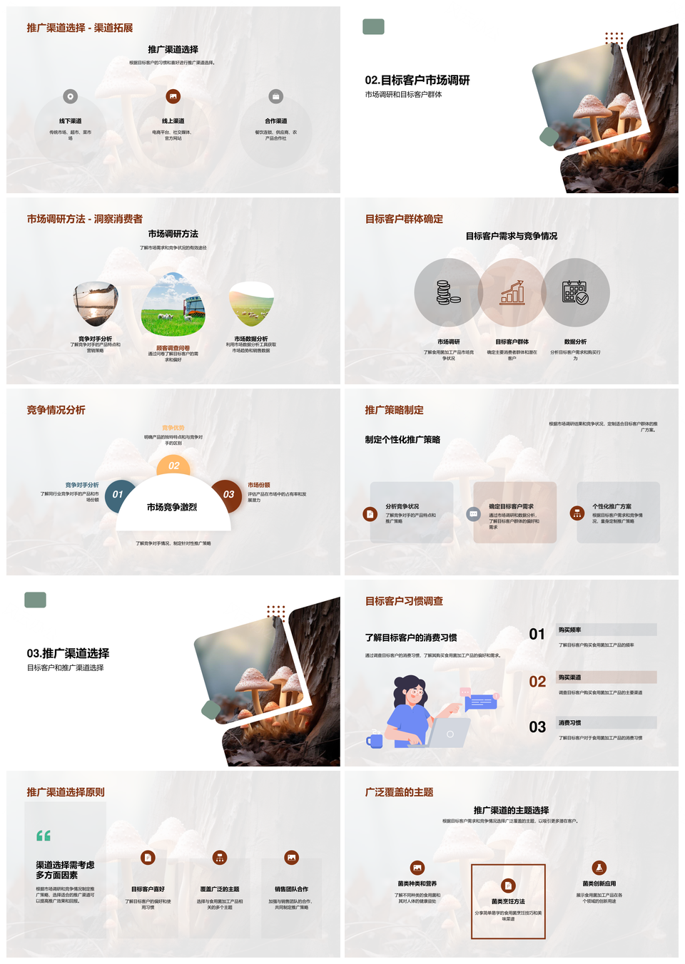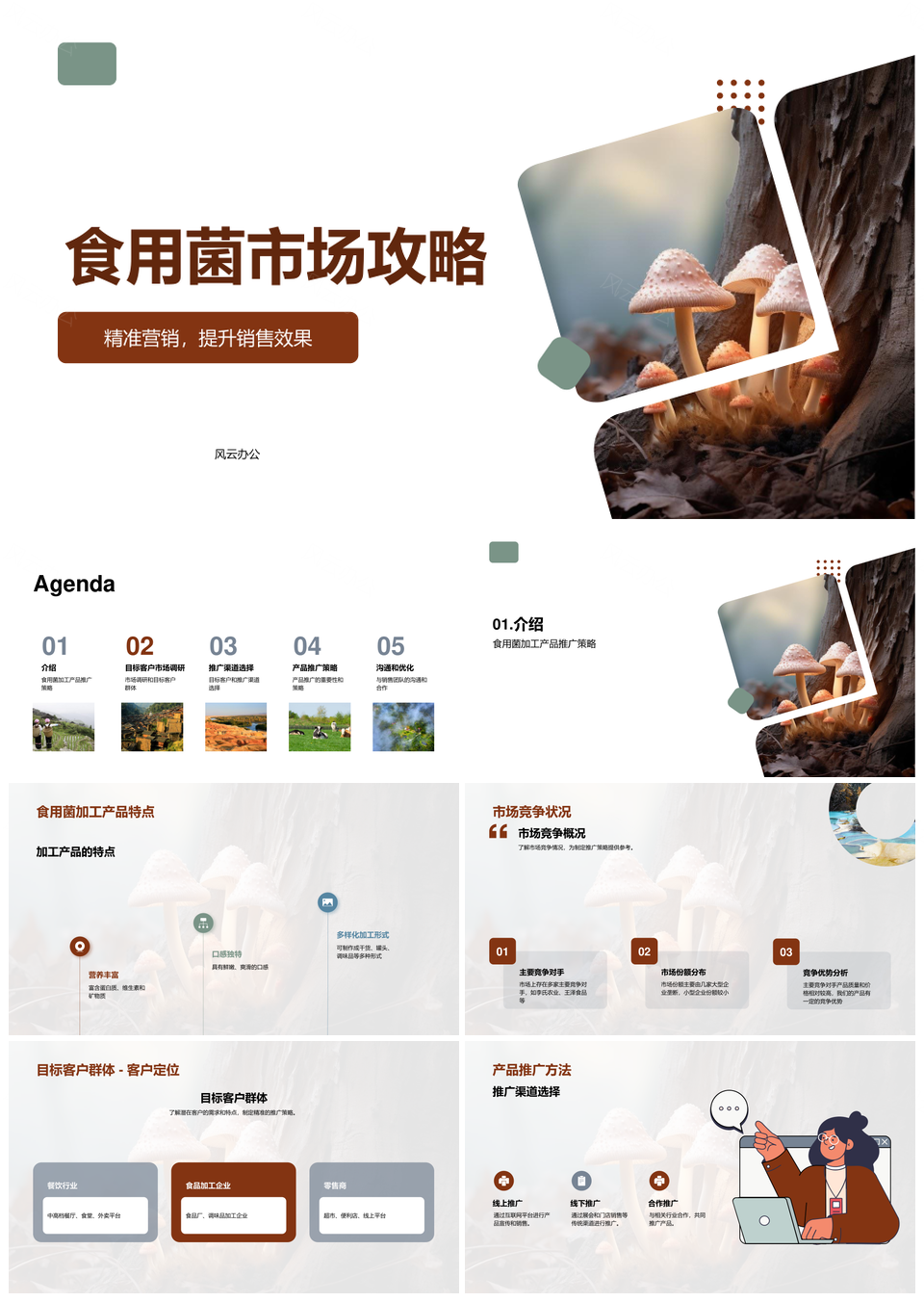 风云办公提供的食用菌加工产品营销推广策划方案PPT模板,下载格式为pptx,一共30页,作品中文字及图均可以修改和编辑,图片更改请在作品中右键图片并更换,文字修改请直接点击文字进行修改。