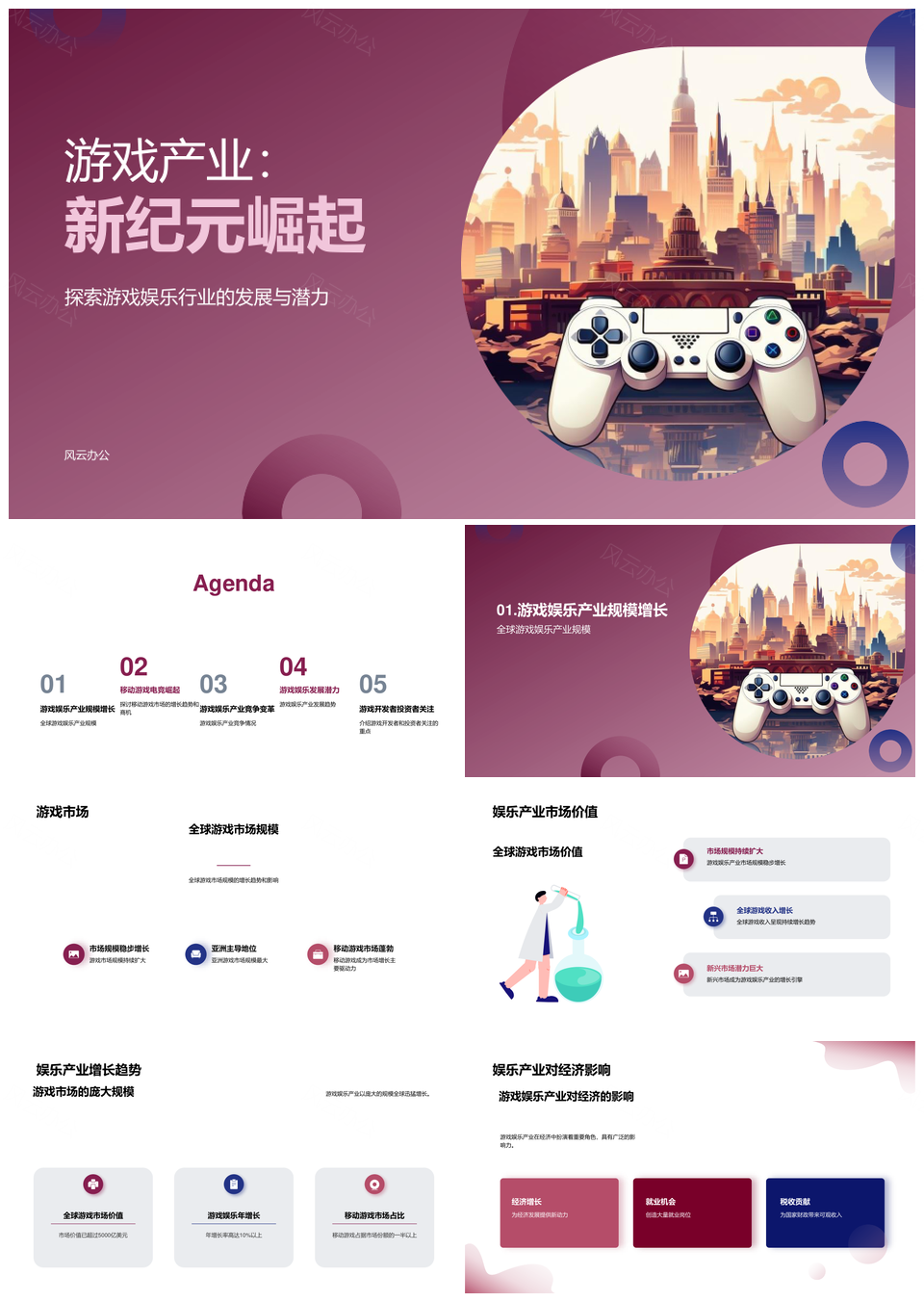 风云办公提供的全球游戏市场移动电竞崛起驱动新纪元PPT模板,下载格式为pptx,一共27页,作品中文字及图均可以修改和编辑,图片更改请在作品中右键图片并更换,文字修改请直接点击文字进行修改。