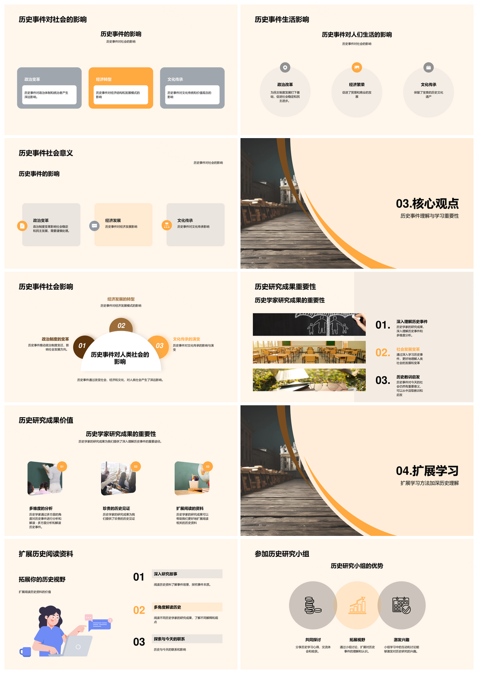 这是一张历史学家与学生互动讲座探历史知识见解PPT模板,包含历史学家、学生、互动、讲座、探、历史知识、见解等主题内容,也可用作历史学家与学生互动讲座、历史学家互动讲座历史知识、互动讲座探历史知识见解、学生互动讲座历史知识、历史学家学生互动历史、讲座历史知识见解探、互动历史知识见解探、历史学家学生互动讲座、历史学家学生讲座历史、学生互动历史知识见解、历史学家学生知识见解、互动讲座历史知识、历史学家讲座知识见解、学生讲座知识见解、历史知识见解探等PPT场景使用。 风云办公提供的历史学家与学生互动讲座探历史知识见解PPT模板,下载格式为pptx,一共19页,作品中文字及图均可以修改和编辑,图片更改请在作品中右键图片并更换,文字修改请直接点击文字进行修改。