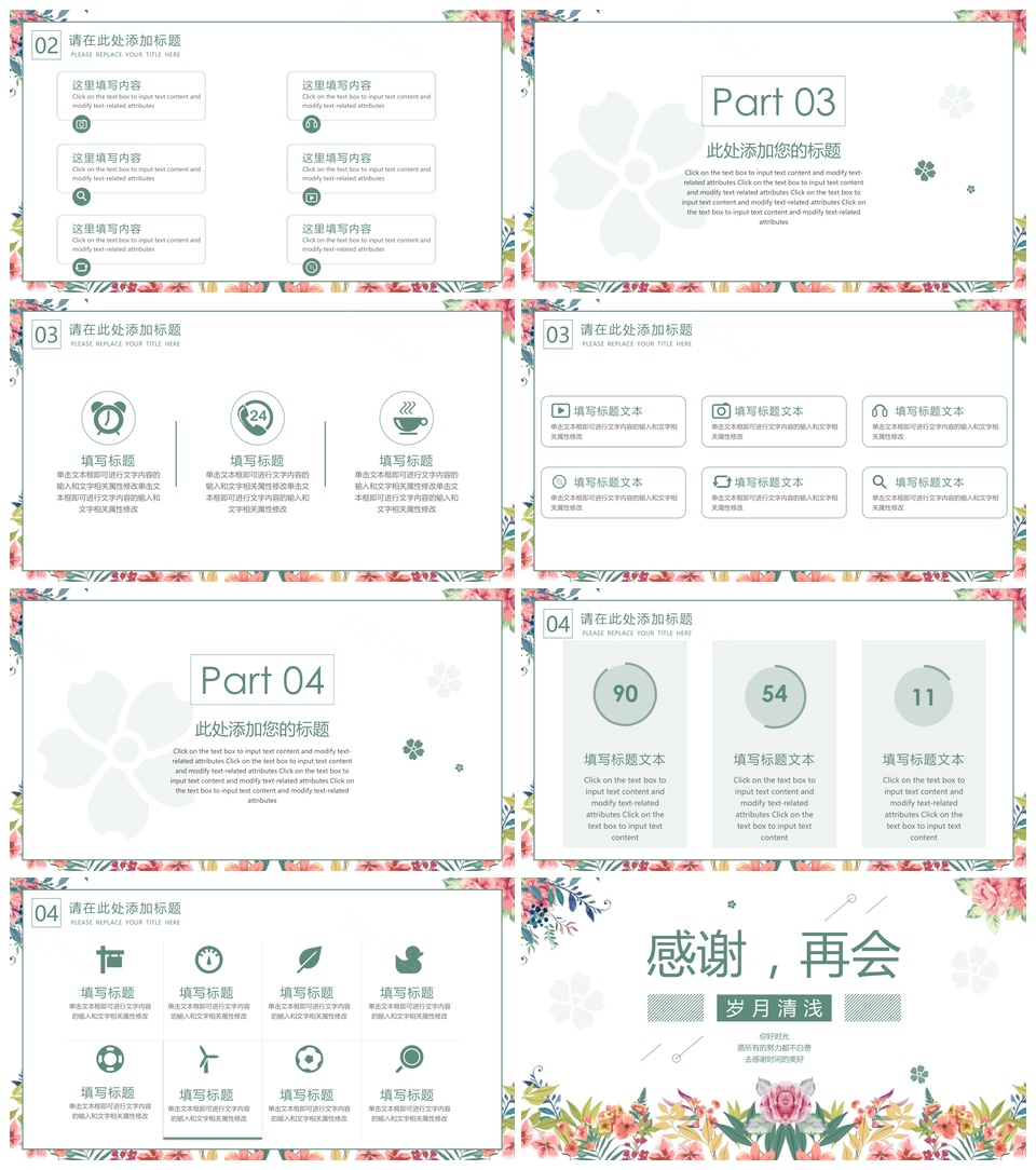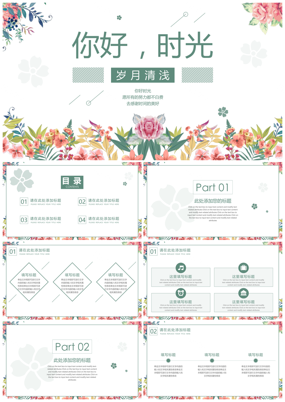 绿色文艺复古花卉年终总结汇报动态PPT模板