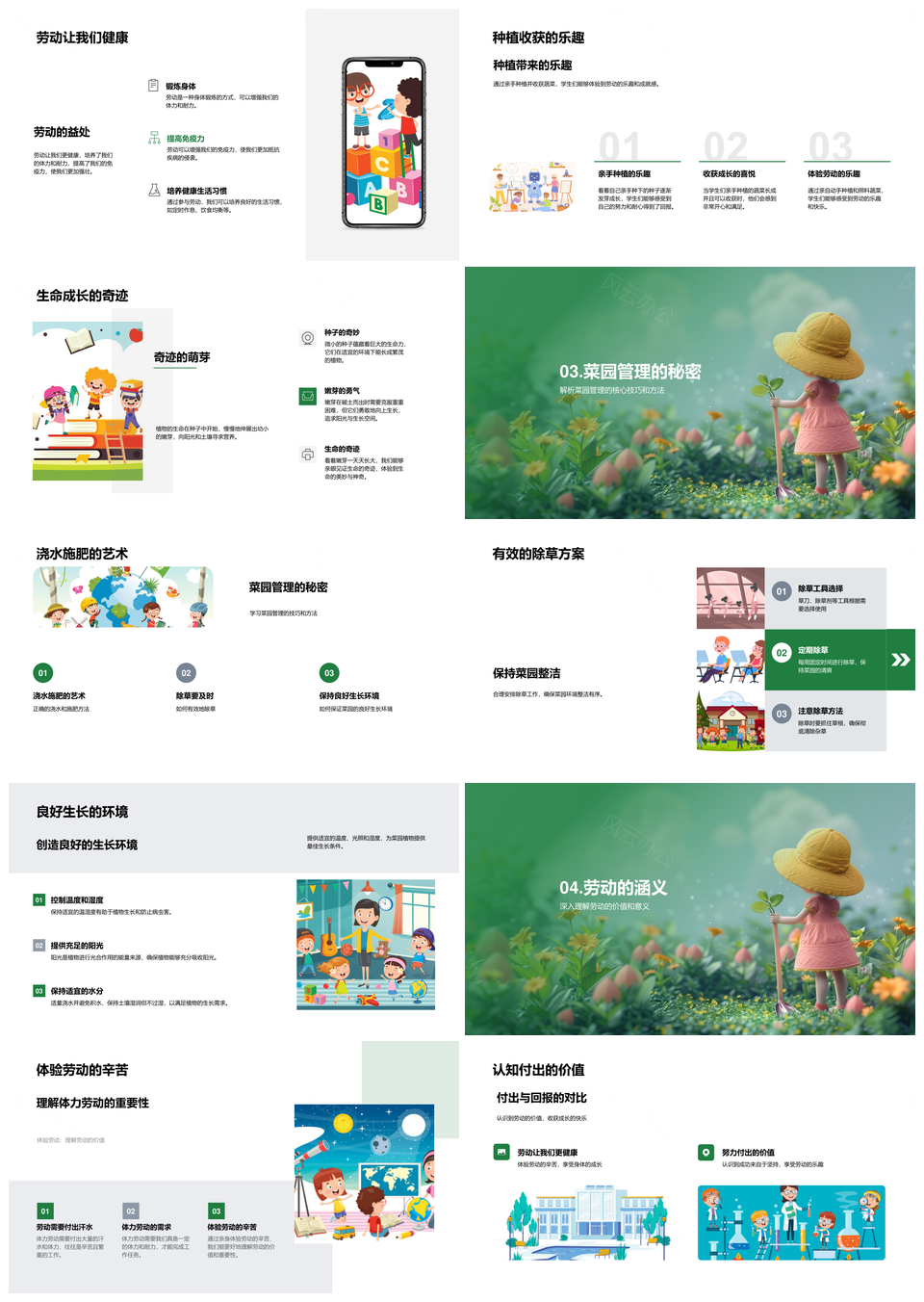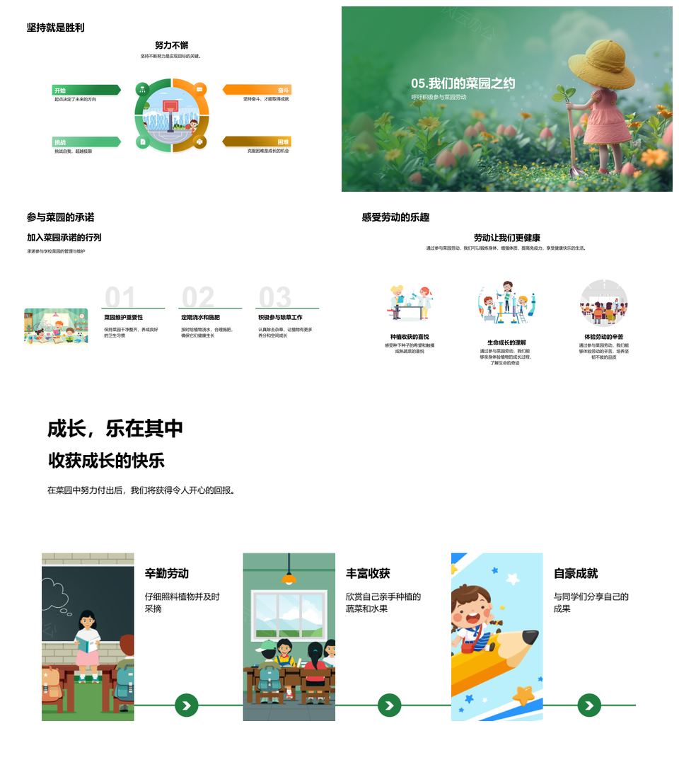 2025五年级菜园劳动实践教学成长价值管理PPT模板推荐