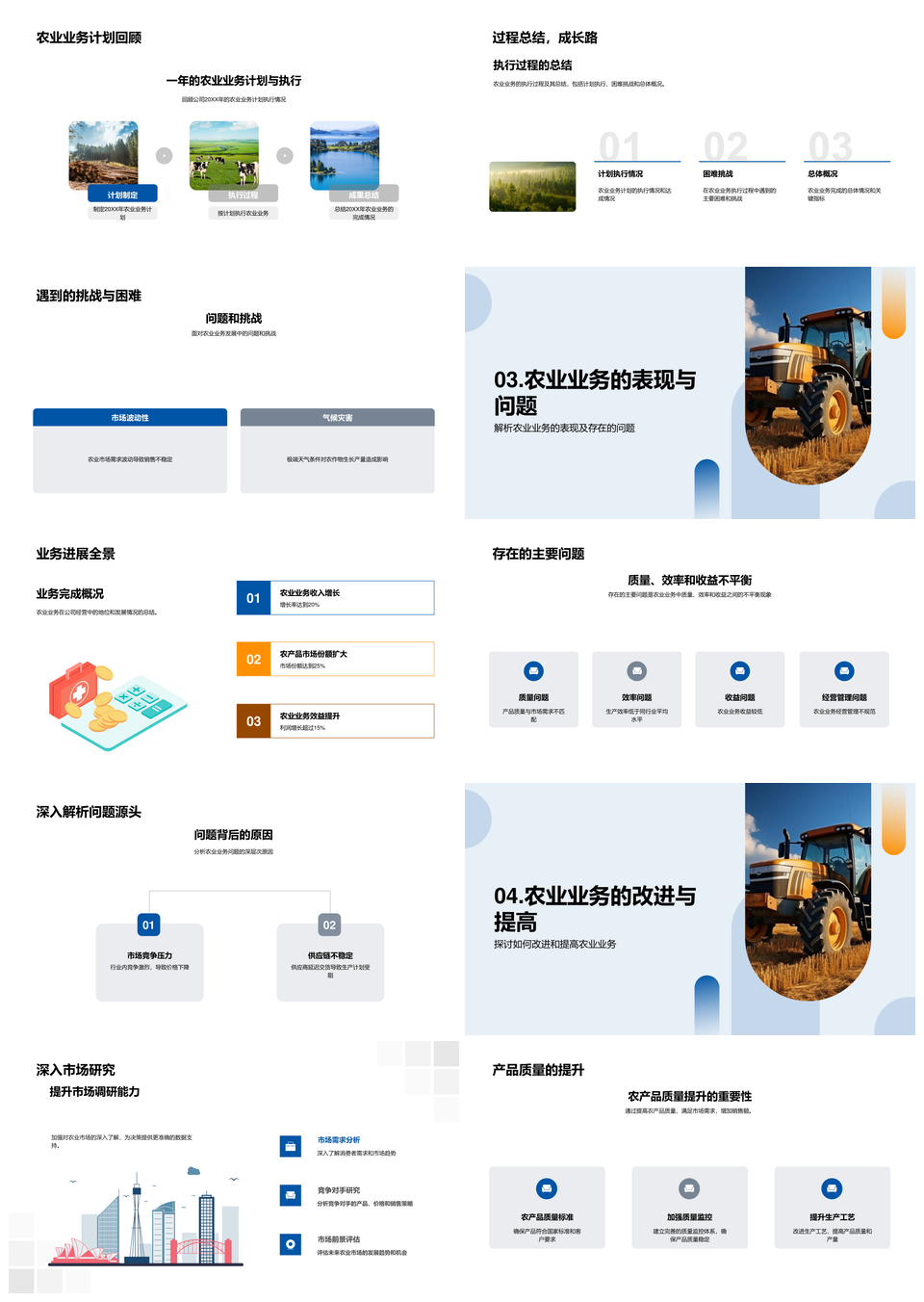 这是一张2025农业公司年度业务稳定完成概况及发展策略PPT模板,包含2025、农业公司、年度业务、稳定完成、概况、发展策略等主题内容,也可用作农业公司年度业务稳定完成、农业公司年度业务稳定、公司年度业务稳定完成、年度业务稳定完成概况、业务稳定完成概况及发展、稳定完成概况及发展策略、农业公司发展策略、年度业务发展策略、农业公司业务稳定、公司业务稳定完成、年度业务完成概况、业务稳定发展策略、农业公司概况及发展、稳定完成发展策略、公司年度发展策略等PPT场景使用。 风云办公提供的2025农业公司年度业务稳定完成概况及发展策略PPT模板,下载格式为pptx,一共24页,作品中文字及图均可以修改和编辑,图片更改请在作品中右键图片并更换,文字修改请直接点击文字进行修改。