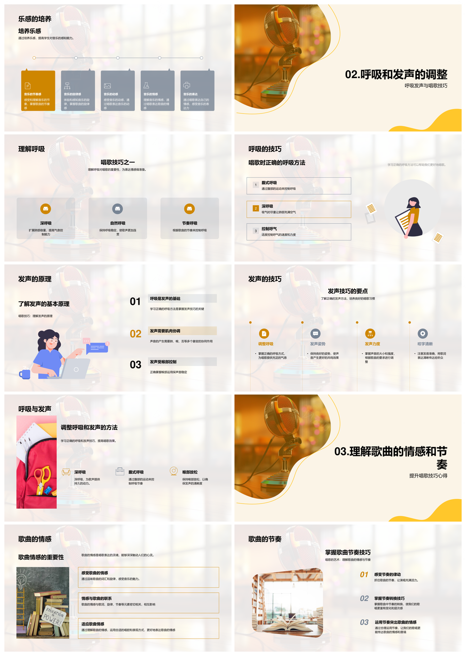 唱歌艺术技巧情感呼吸发声节奏稳定发音麦克风指南PPT模板